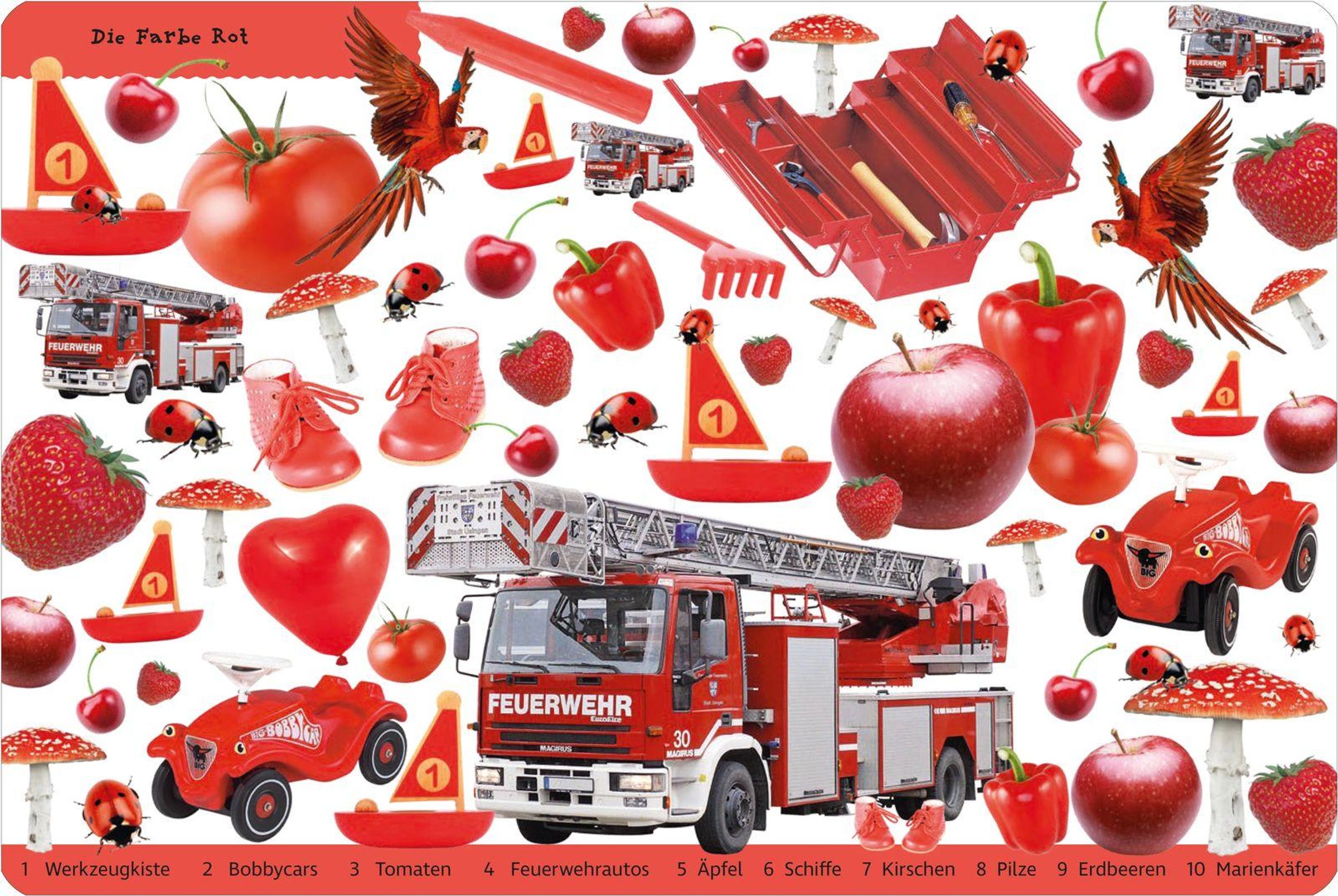 Der kunterbunte Such- und Lernspaß mit über 400 Fotos zum Entdecken, Zählen und Benennen für Kindergartenkinder: In diesem großen, fröhlich-bunten Pappbilderbuch öffnet sich auf jeder Seite eine neue Farbwelt: Was ist rot, grün, gelb oder blau? Über 50 Gegenstände können auf jeder Seite gesucht, gefunden und gezählt werden. So lernen Kinder spielerisch, die Farben sowie die wichtigsten Gegenstände aus dem Alltag zu benennen und nebenbei wird das erste Zählen geübt.