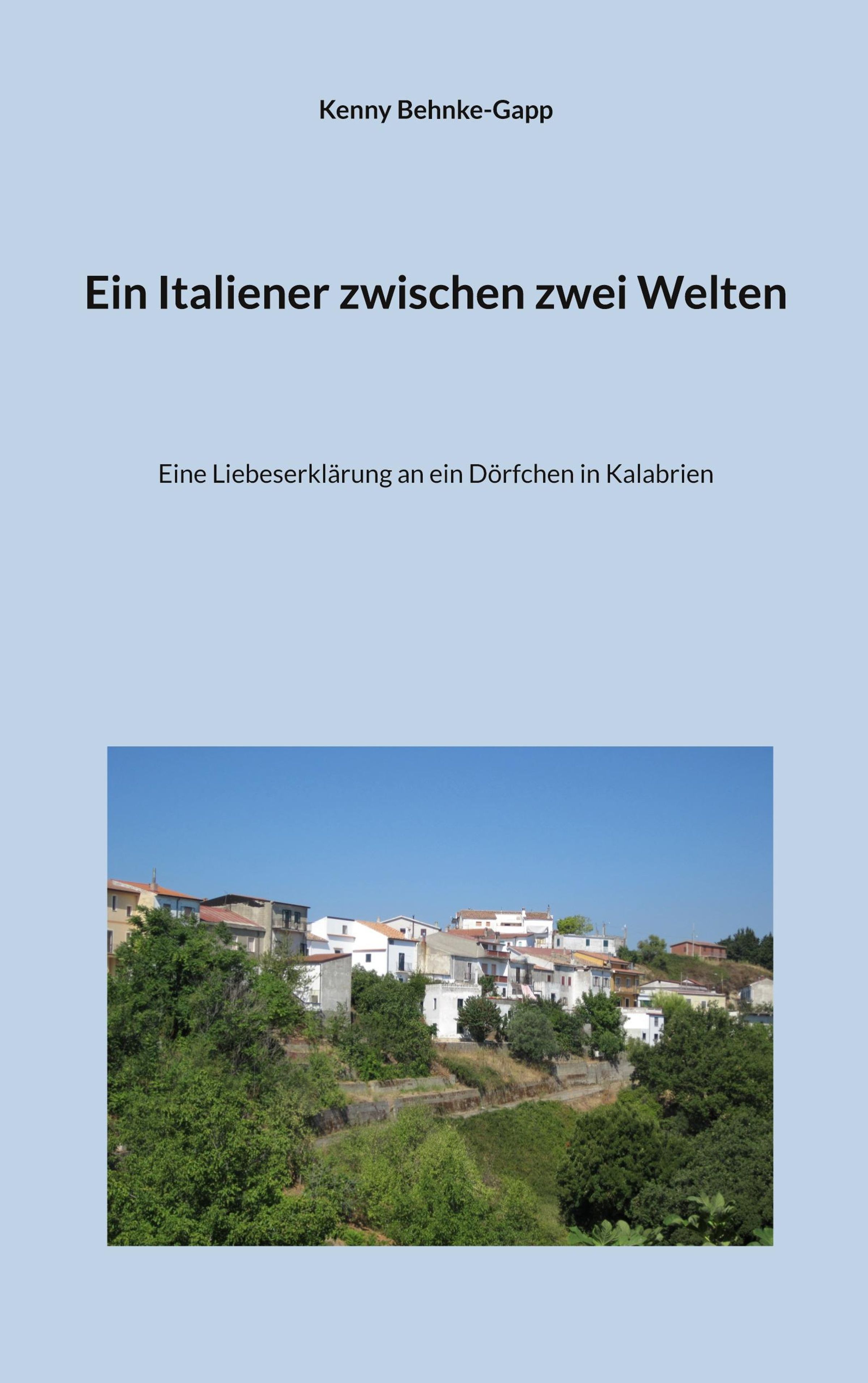 Titel: "Ein Italiener zwischen zwei Welten". Untertitel: "Eine Liebeserklärung an ein Dörfchen in Kalabrien". Dorfansicht., Buch