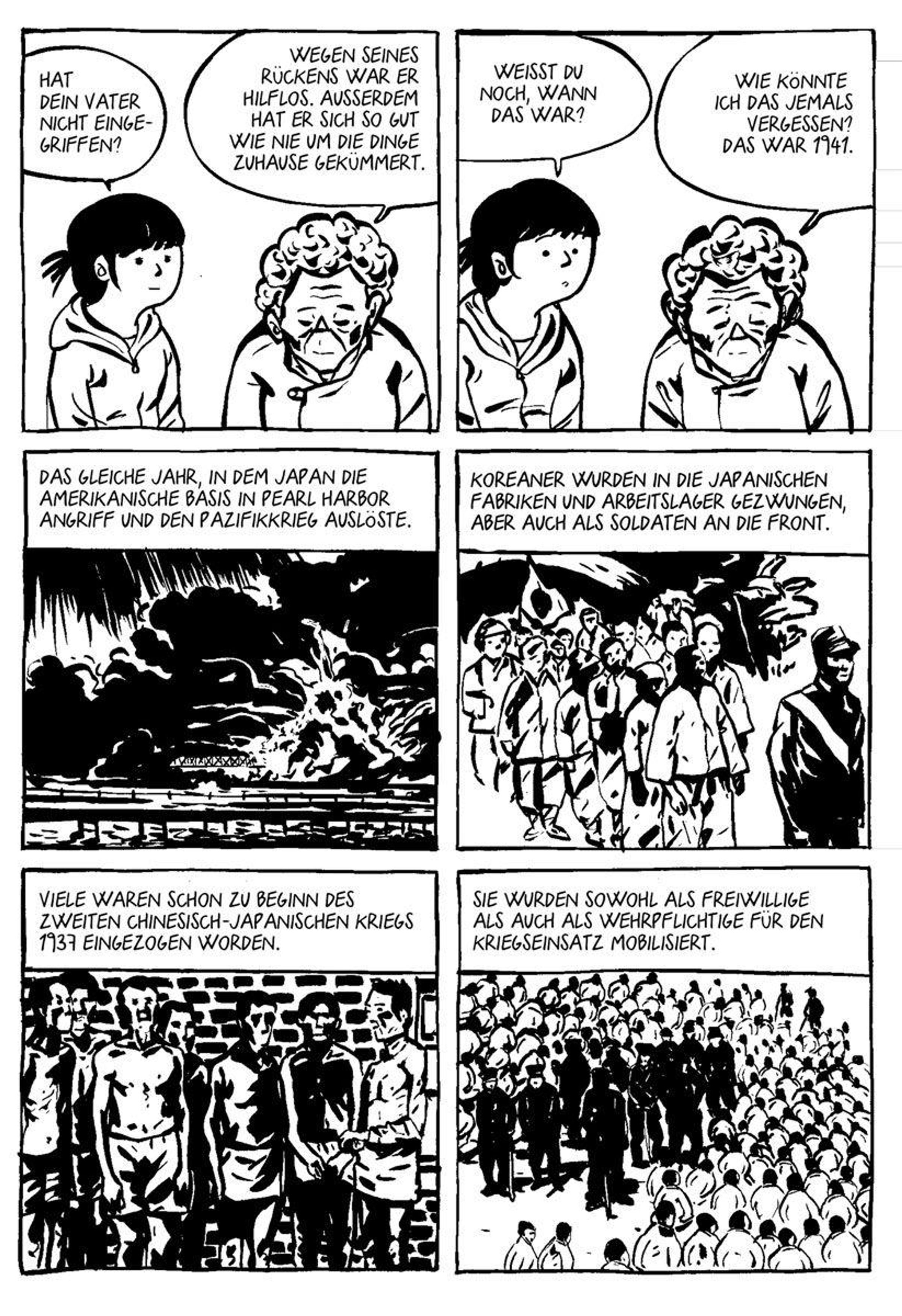 Mit ihrem Werk beleuchtet Keum Suk Gendry-Kim diesen totgeschwiegenen Aspekt der Geschichte und distanziert sich gleichzeitig von den revisionistischen offiziellen Diskursen. Endlich gibt es die Gelegenheit, dieses fast 500 Seiten starke Meisterwerk in deutscher Übersetzung zu entdecken.
