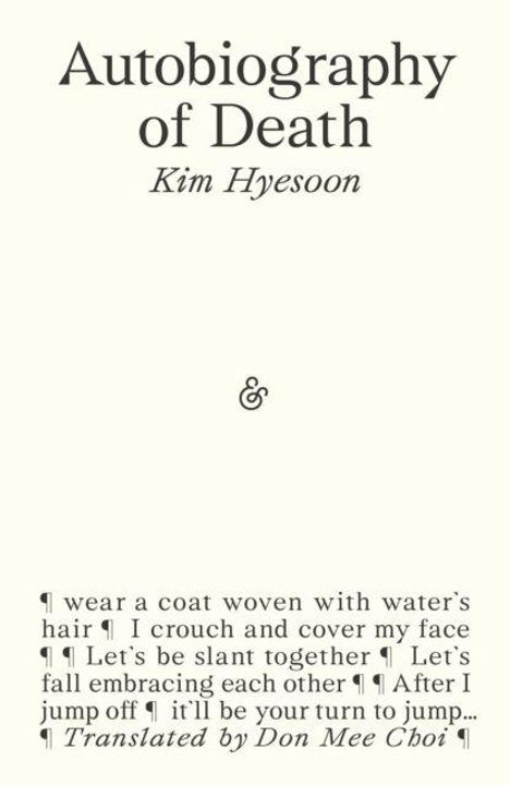 The title section of Kim Hyesoon's visceral Autobiography of Death consists of forty-nine poems, each poem representing a single day during which the spirit roams after death before it enters the cycle of reincarnation. The poems not only give voice to those who met unjust deaths during Korea's violent contemporary history, but also unveil what Kim calls 'the structure of death, that we remain living in'. Autobiography of Death at once re-enacts trauma and narrates death - how we die and how we survive within this cyclical structure. In this sea of mirrors, the plural 'you' speaks as a body of multitudes that has been beaten, bombed, and buried many times over by history. The volume concludes on the other side of the mirror with 'Face of Rhythm', a poem about individual pain, illness, and meditation.