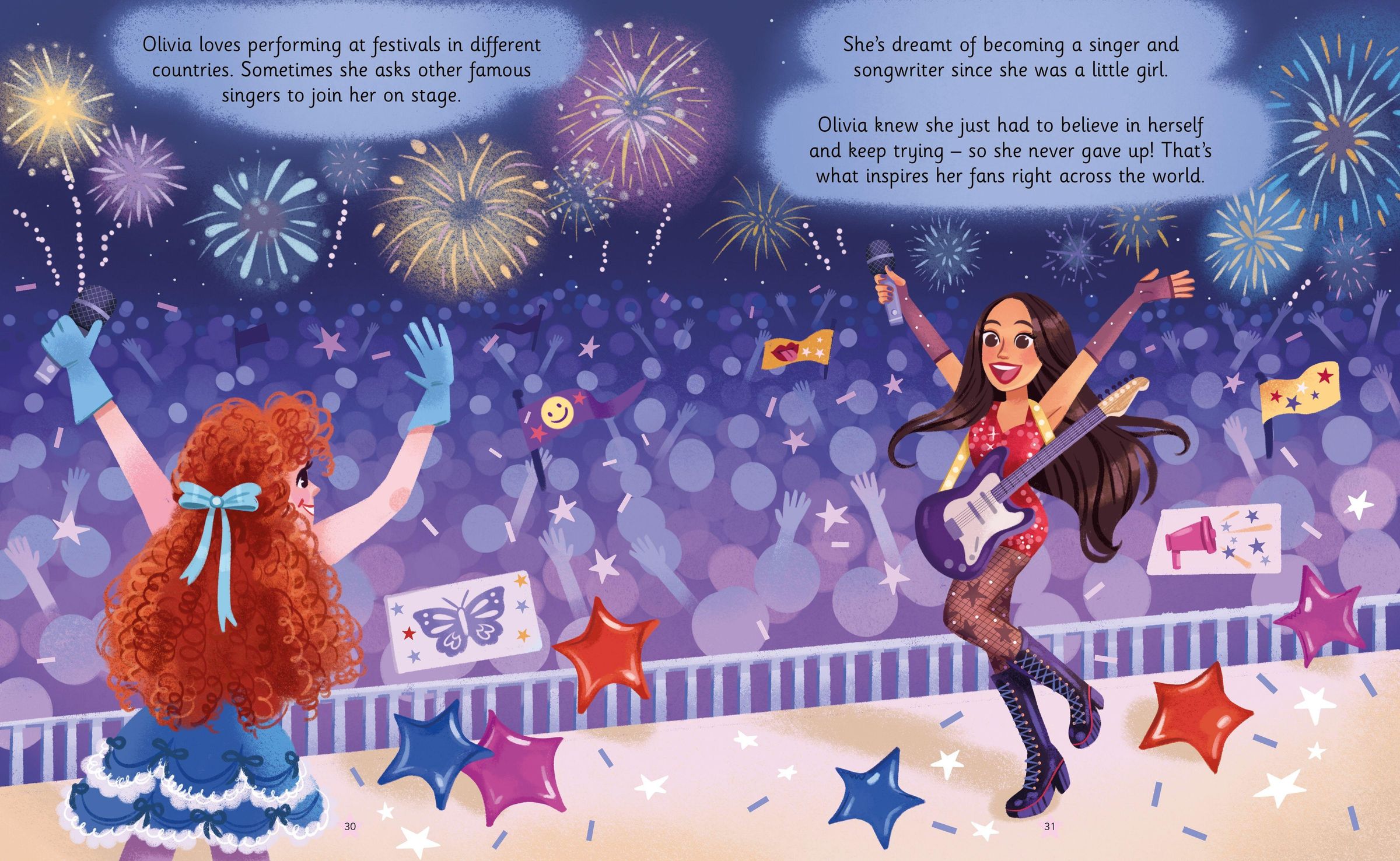 Through this vibrant and colorful storybook, explore Olivia's path from her early acting days to becoming a pop sensation!