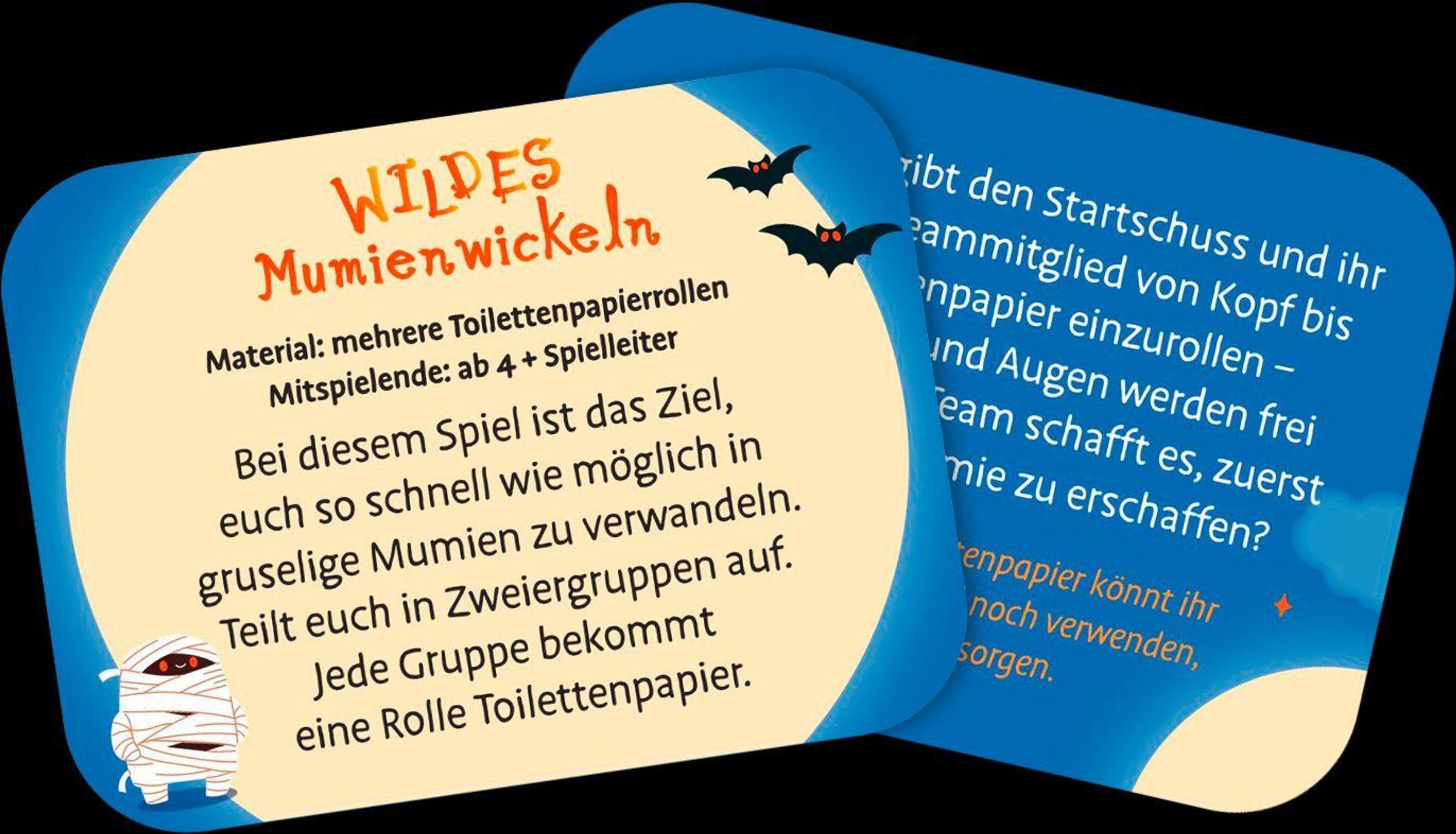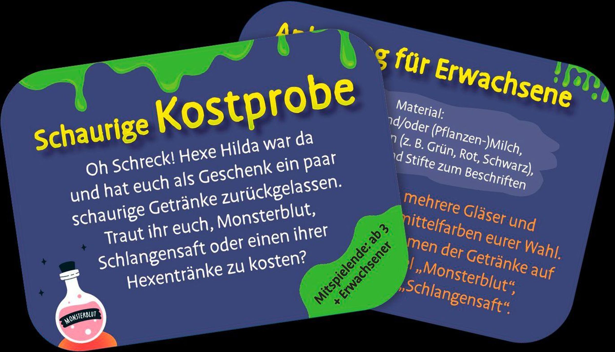 Egal ob schaurige Zaubertränke kosten, um die Wette Mumienwickeln oder den Mut finden, einen Schatz aus einem Eimer Glibber zu fischen: Diese Box garantiert Gänsehaut und Gelächter. Die praktische und stabile Metalldose liefert 25 lustige Spielideen und kindgerechte Mutproben für Kinder ab 6 Jahren. Mal für kleinere, mal für größere Gruppen ausgelegt, sorgen die Spiele für schaurig-schönen Spaß beim Gruselfest mit der Familie oder der Halloweenparty mit Freundinnen und Freunden.