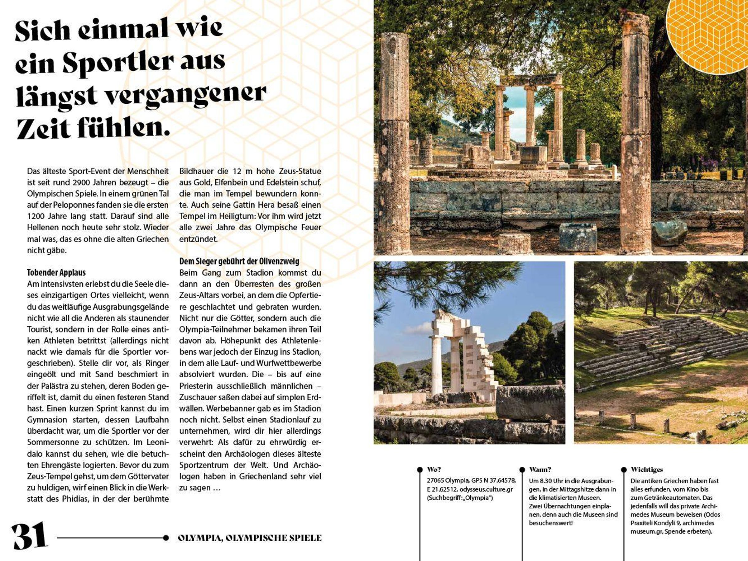 Der Reiseführer Soul Places Griechenland lädt ein, mit allen Sinnen in die Seele Hellas einzutauchen und sich mitreißen zu lassen von der Jahrtausendalten Geschichte, den hervorragenden kulinarischen Gaumenfreuden und der Lebensfreude der Bewohner.