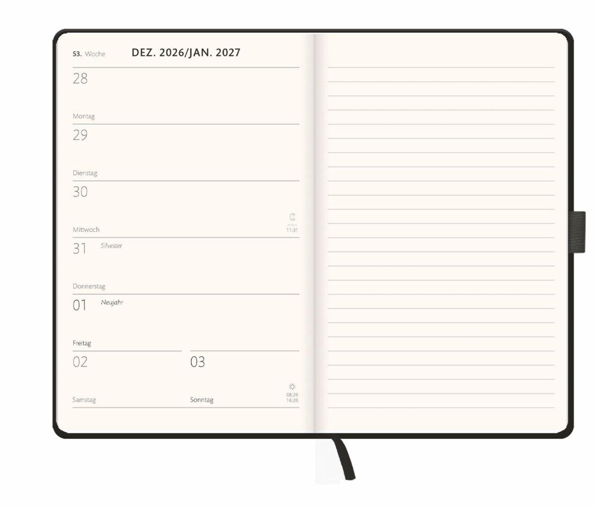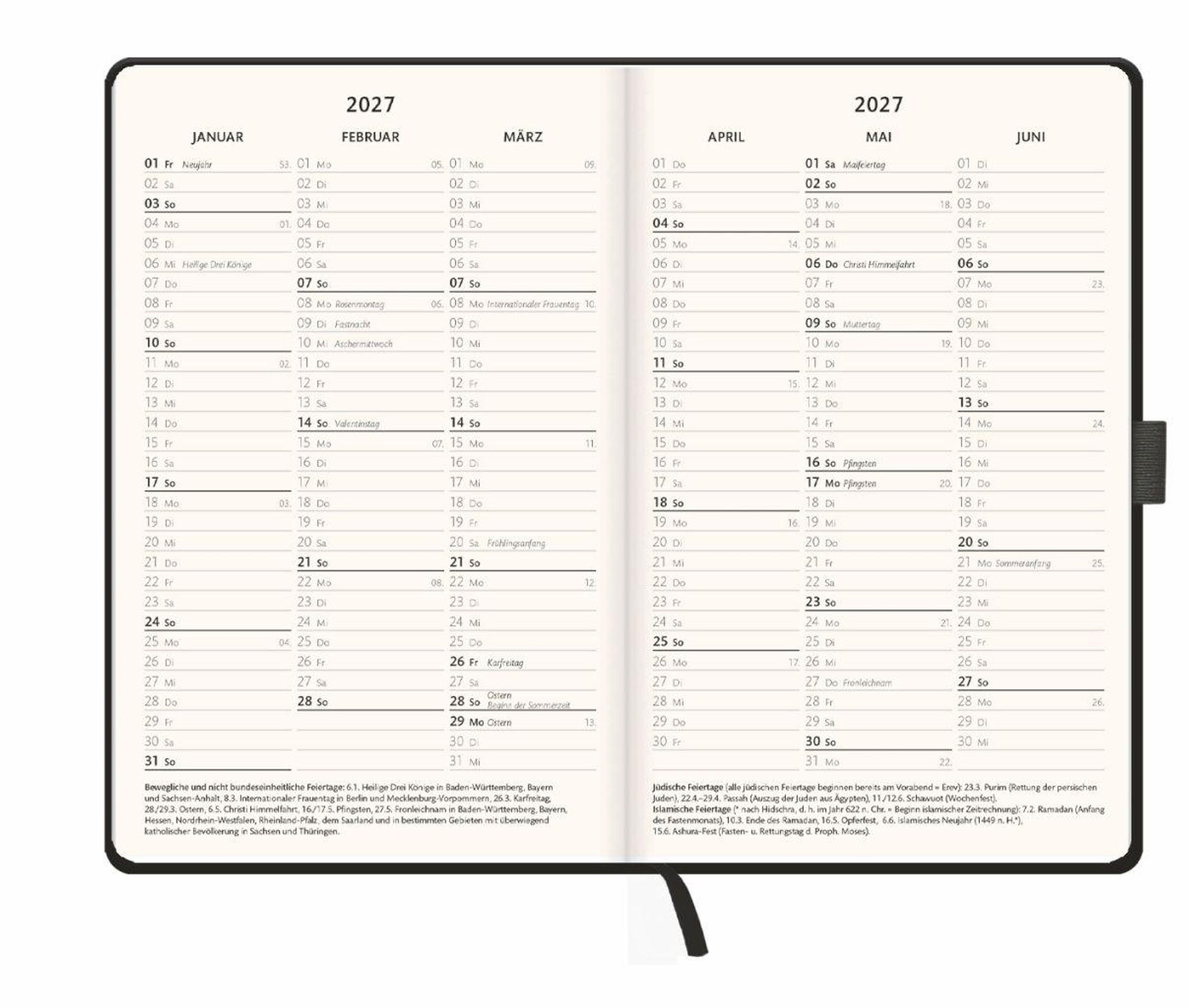 - Schwarzer Terminkalender 2027. Buch-Kalender mit Lesebändchen und Gummiband. Kleiner Taschenkalender zum Planen von Terminen.