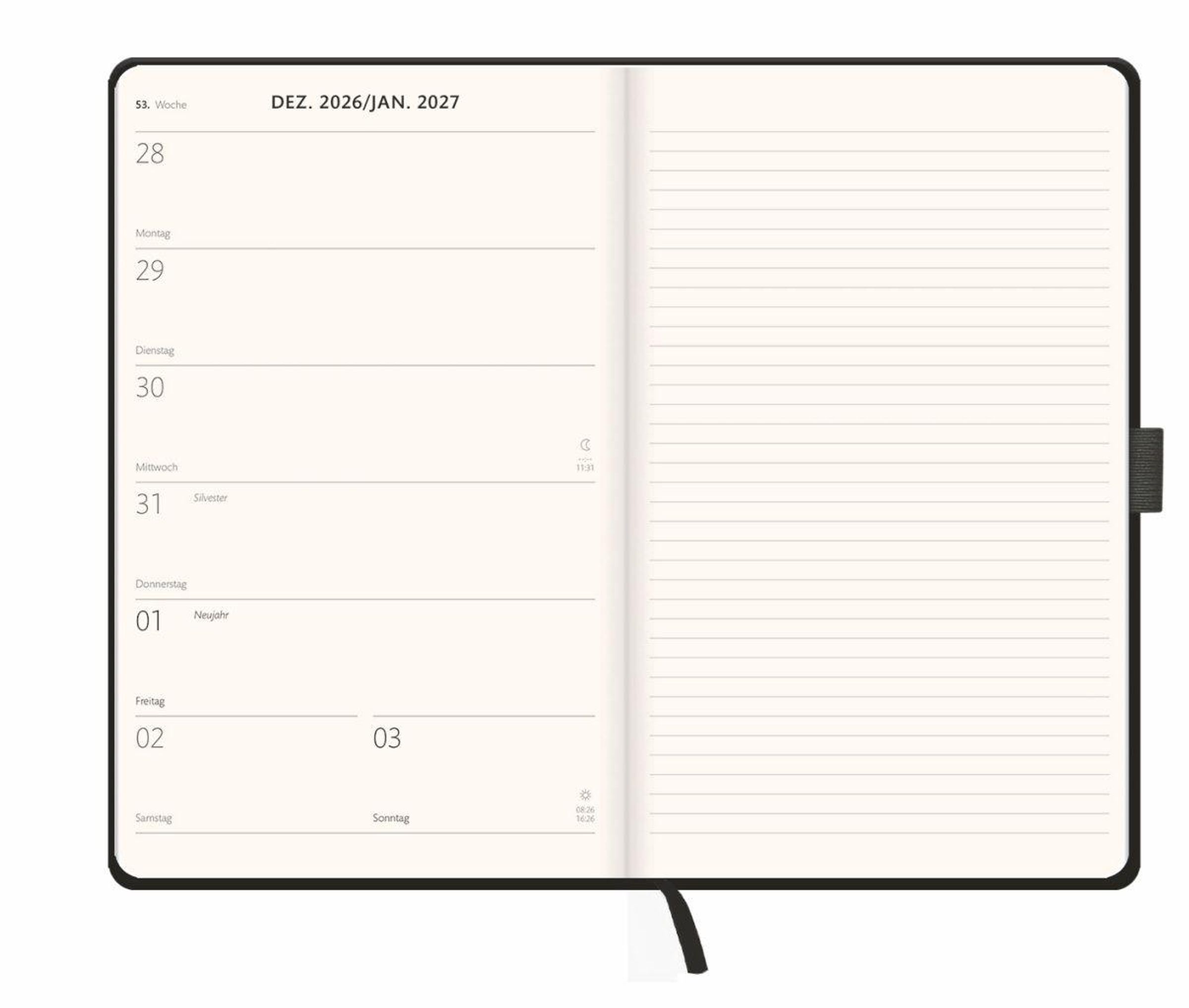- Schwarzer Terminkalender 2027. Buch-Kalender mit Lesebändchen und Gummiband. Taschenkalender zum Planen von Terminen.