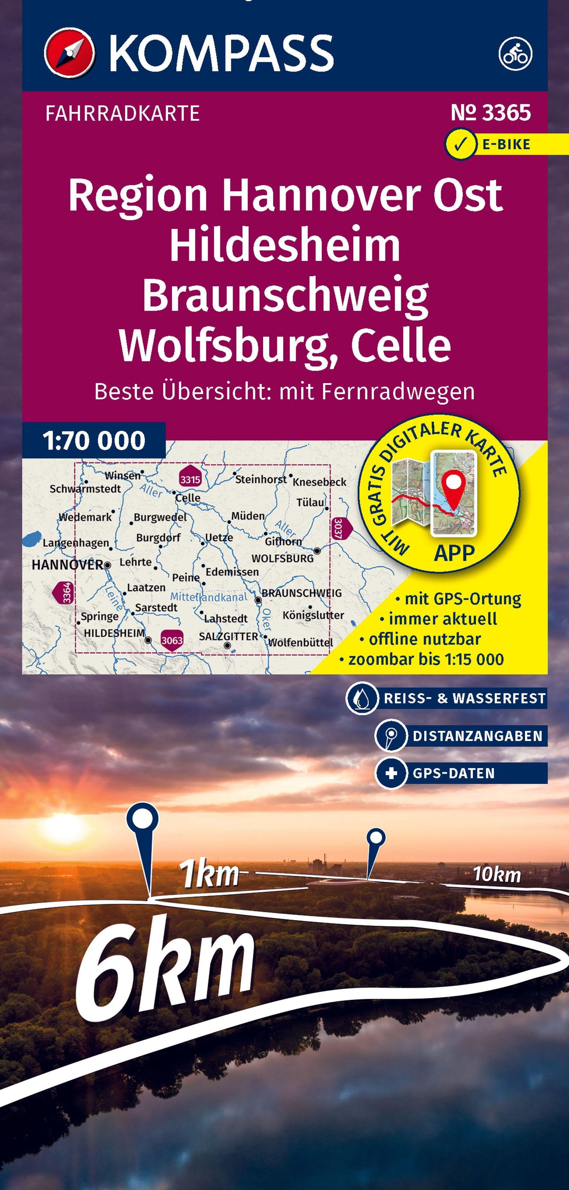 KOMPASS Fahrradkarte 3365 Region Hannover Ost, Hildesheim, Braunschweig, Wolfsburg, Celle, mit Knotenpunkten... (Karten)