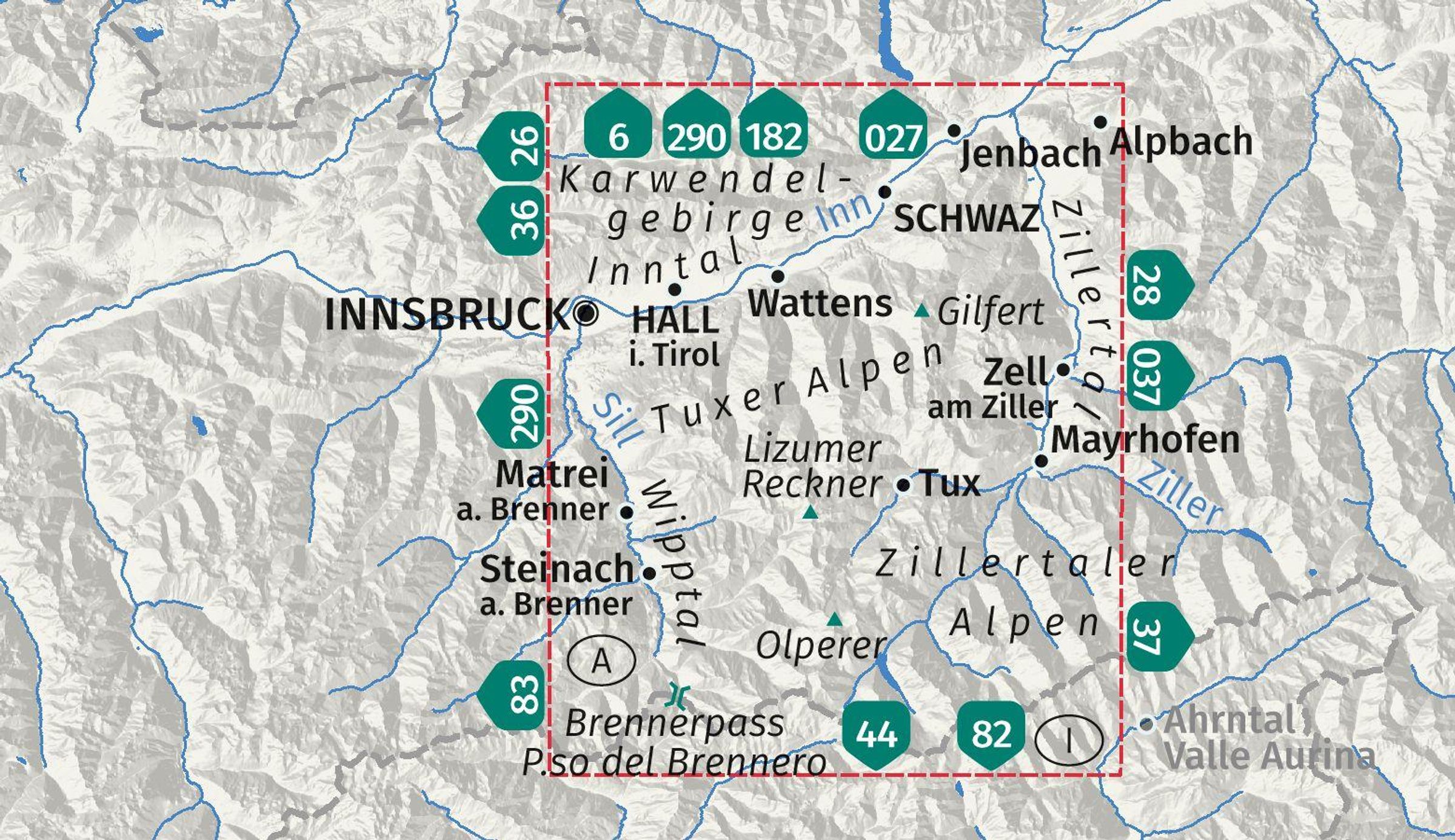 KOMPASS Wanderkarte 34 Tuxer Alpen, Inntal, Wipptal, Zillertal 1:50.000