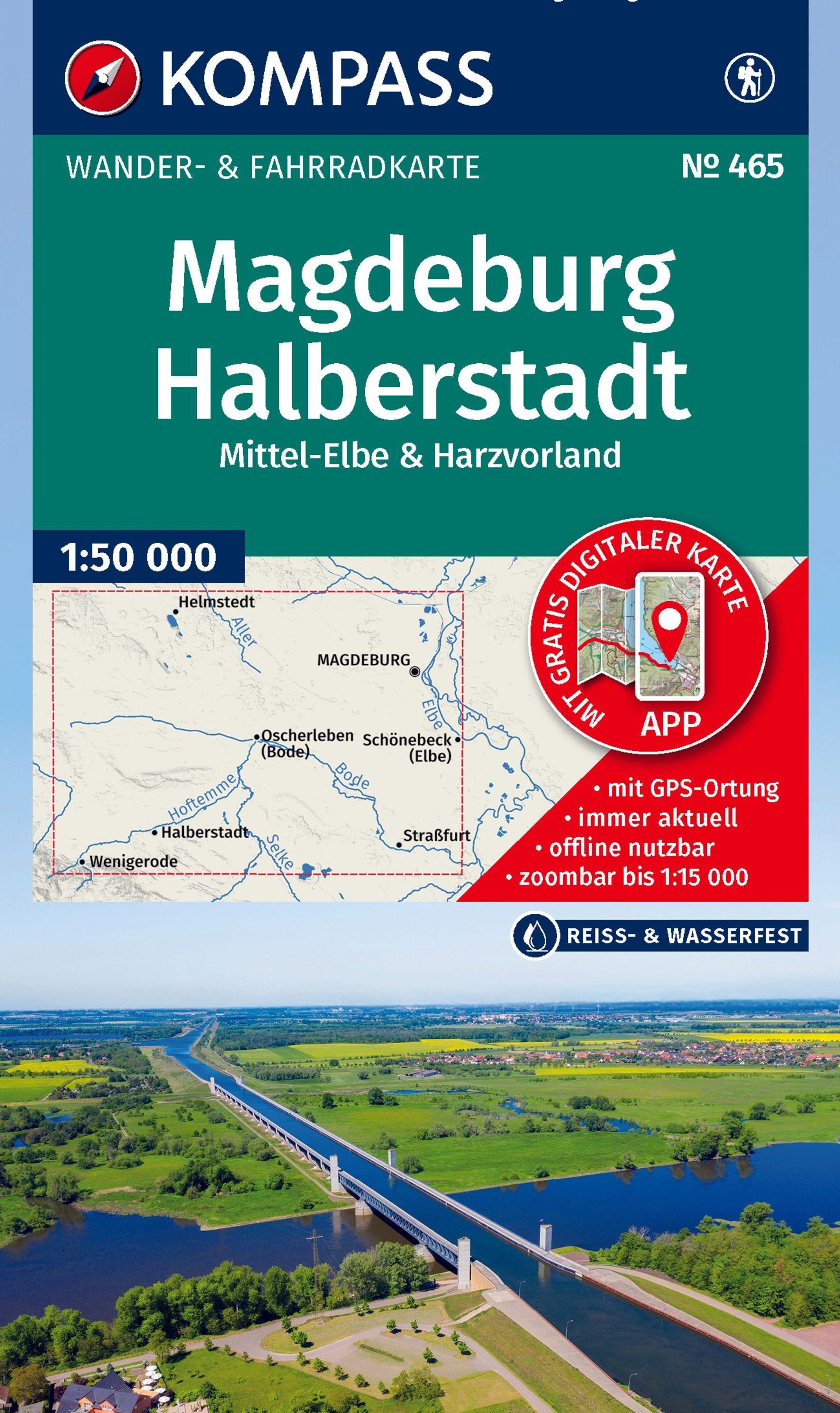 KOMPASS Wanderkarte 465 Magdeburg, Halberstadt, Mittel-Elbe & Harzvorland 1:50.000
