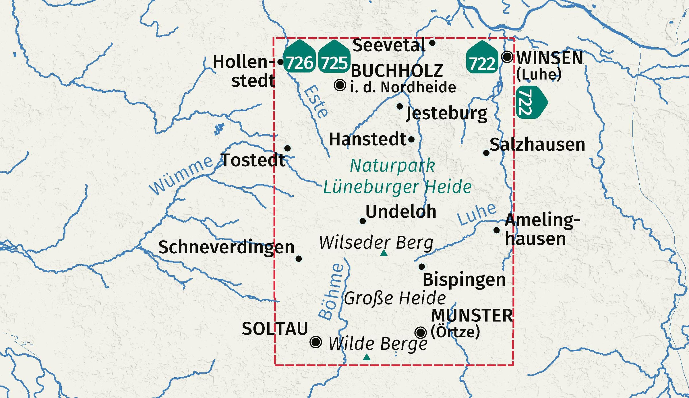 Ausstattung der Wanderkarte Lüneburger Heide: