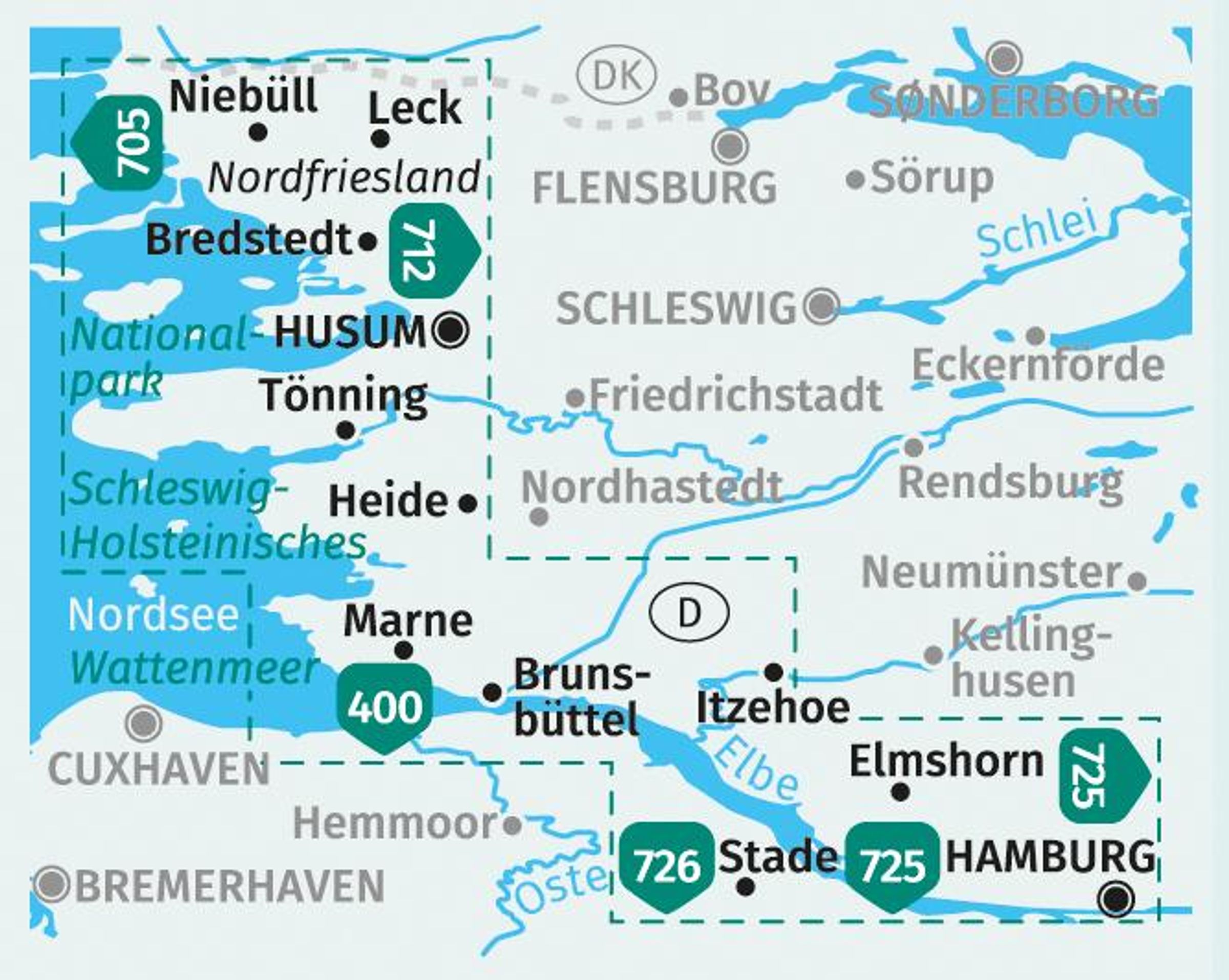 KOMPASS Wanderkarten-Set 723 Nordseeküste von Hamburg bis Dänemark (2 Karten) 1:50.000