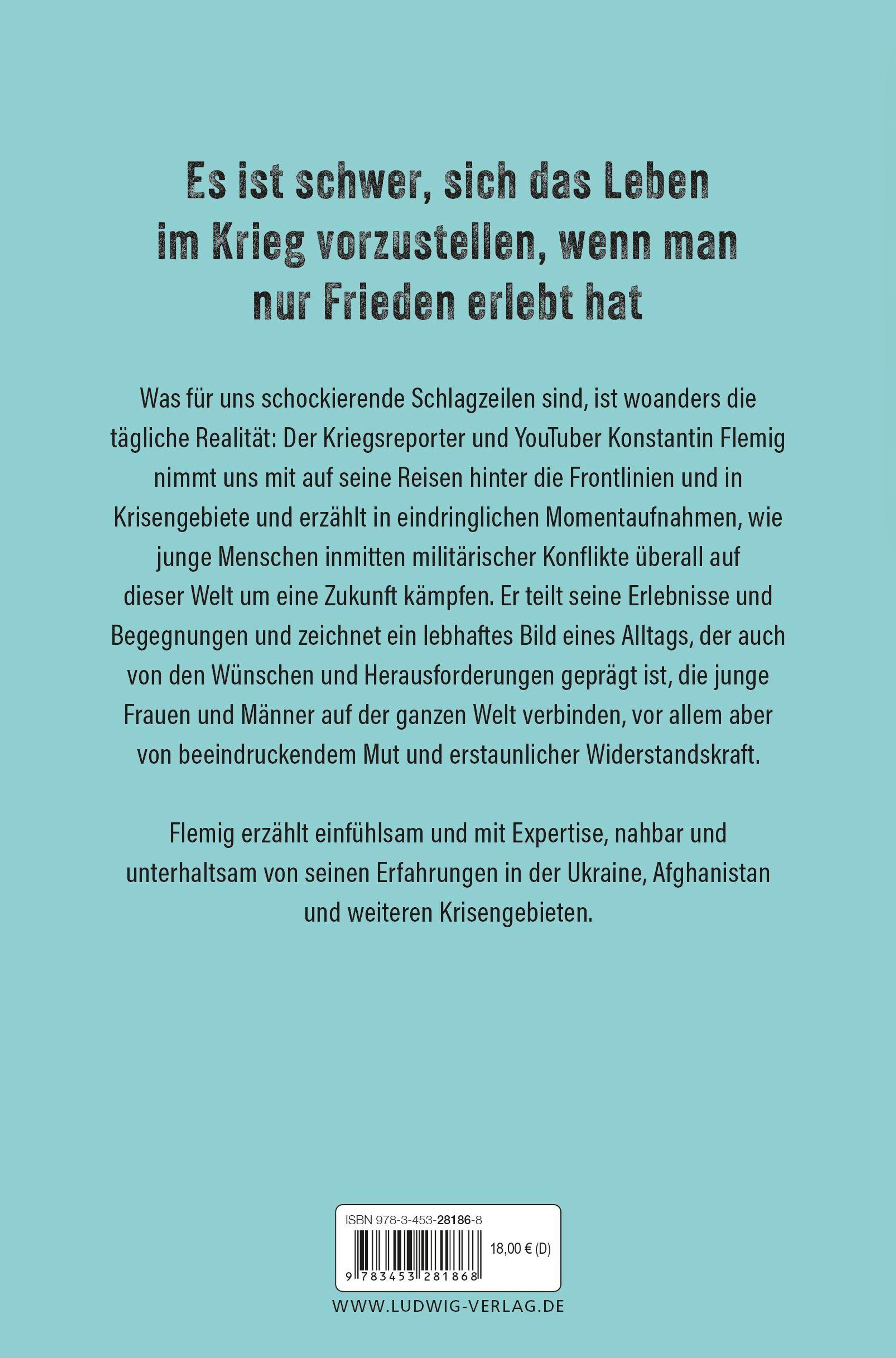 Was für uns schockierende Schlagzeilen sind, ist woanders die tägliche Realität: Der Kriegsreporter und YouTuber Konstantin Flemig nimmt uns mit auf seine Reisen hinter die Frontlinien und in Krisengebiete und erzählt in eindringlichen Momentaufnahmen, wie junge Menschen inmitten militärischer Konflikte überall auf dieser Welt um eine Zukunft kämpfen. Er teilt seine Erlebnisse und Begegnungen und zeichnet ein lebhaftes Bild eines Alltags, der auch von den Wünschen und Herausforderungen geprägt ist, die junge Frauen und Männer auf der ganzen Welt verbinden, vor allem aber von beeindruckendem Mut und erstaunlicher Widerstandskraft. Flemig erzählt einfühlsam und mit Expertise, nahbar und unterhaltsam von seinen Erfahrungen in der Ukraine, Afghanistan und weiteren Krisengebieten.