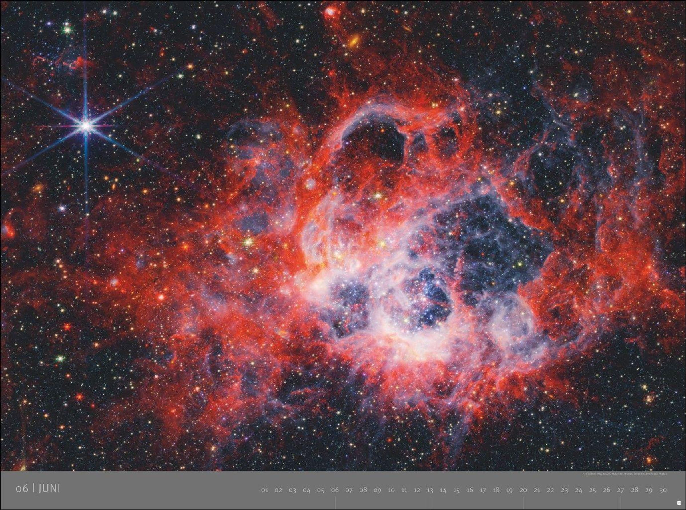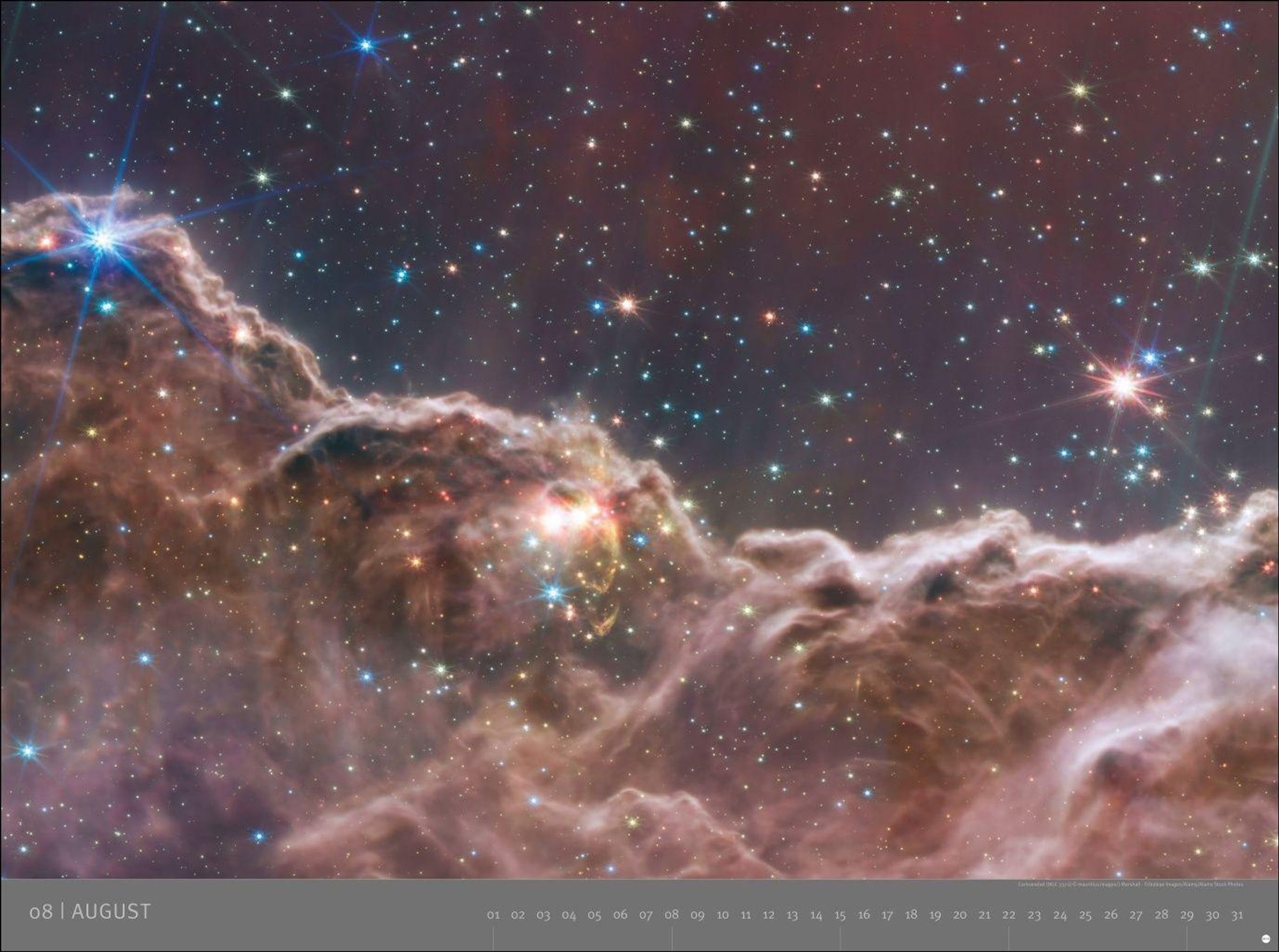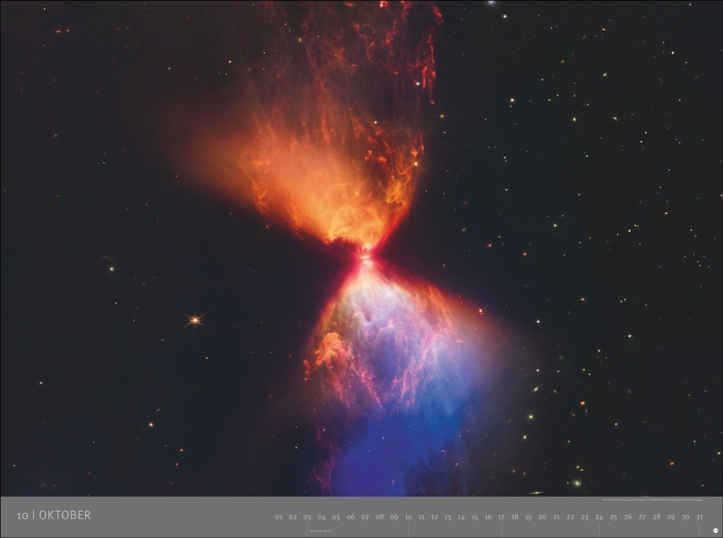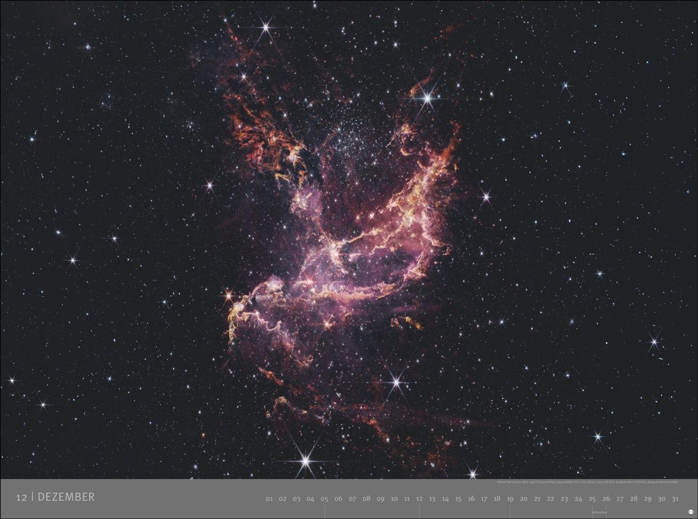 KOSMOS, Edition Alexander von Humboldt – 2027. Im Hintergrund ein Sternenhimmel mit leuchtenden blauen Nebeln., Kalender