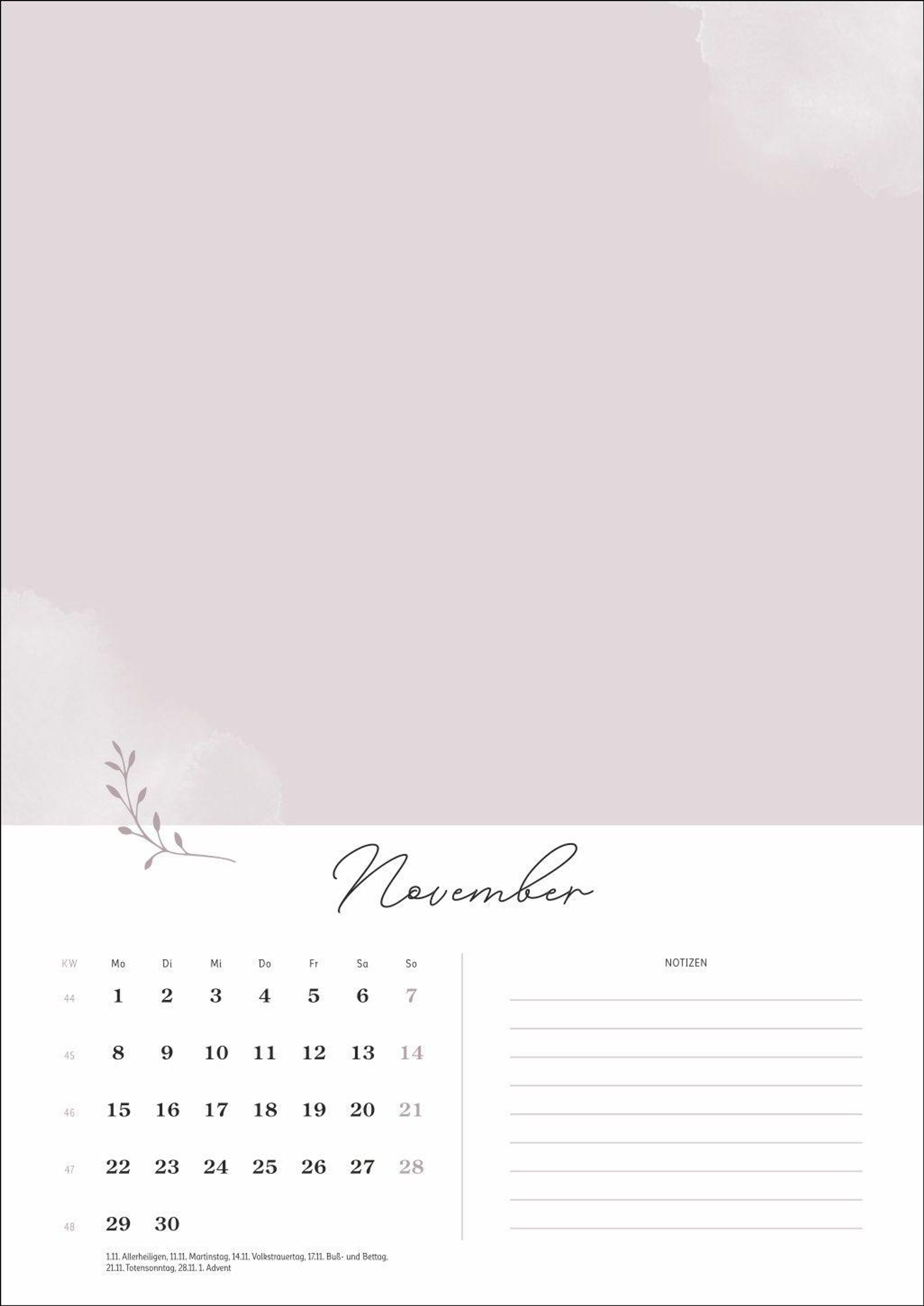 Mit Platz für Fotos bis zu einem Format von 18 x 13 cm (quer) und Raum für Notizen neben dem Kalendarium ist dieser Wandkalender gleichermaßen dekorativ und praktisch