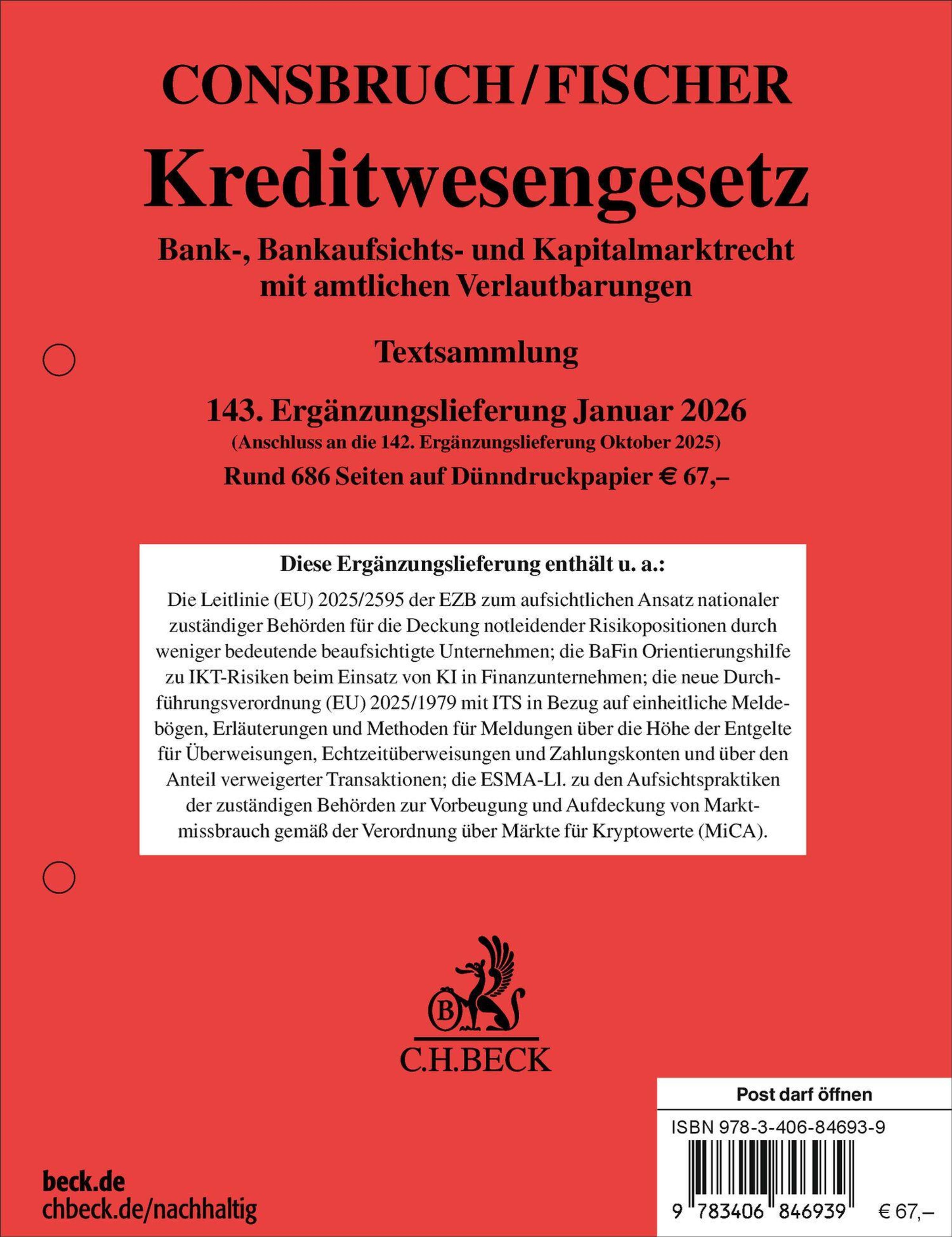 Kreditwesengesetz 143. Ergänzungslieferung