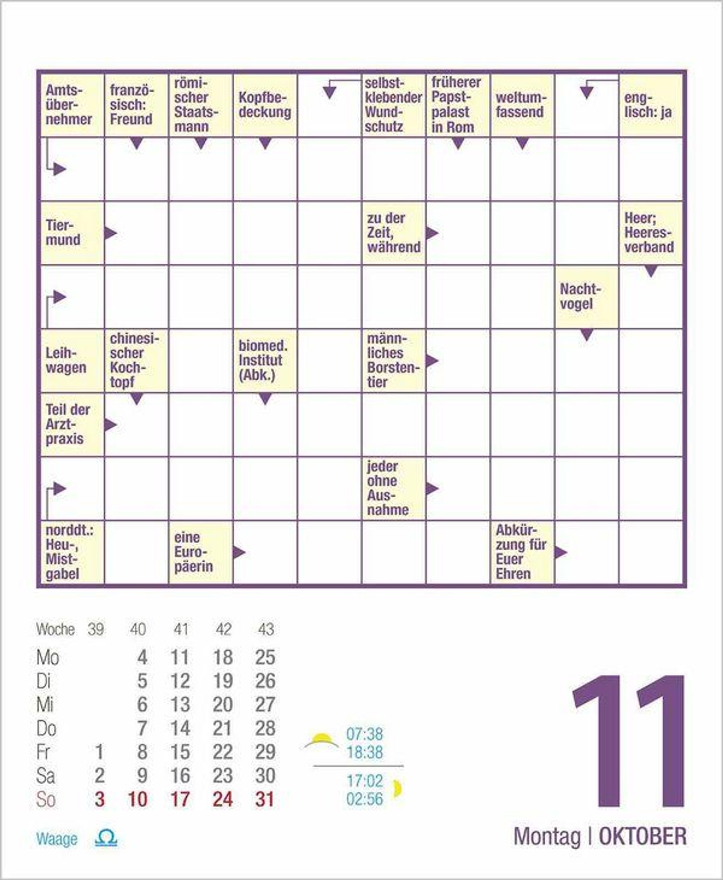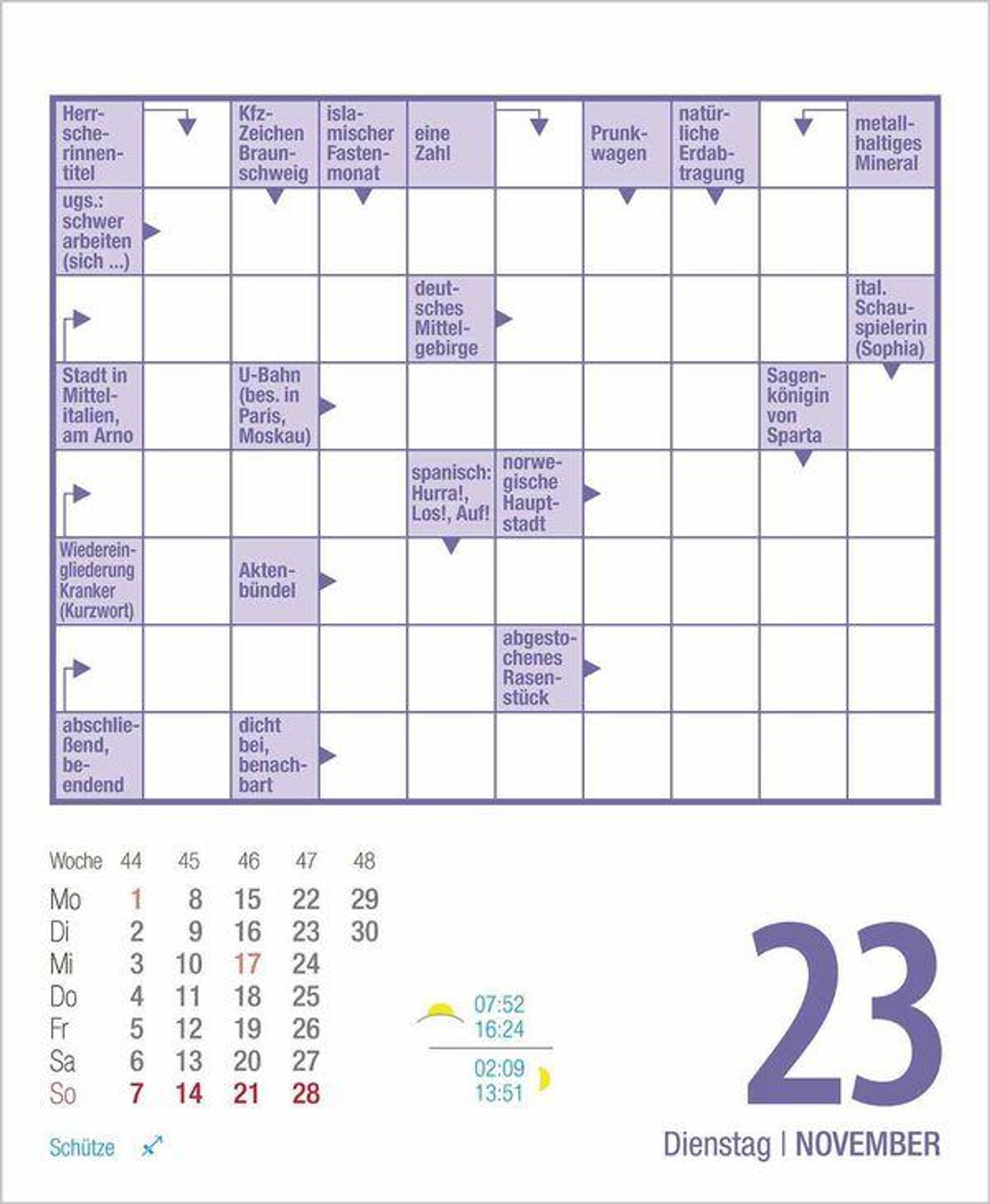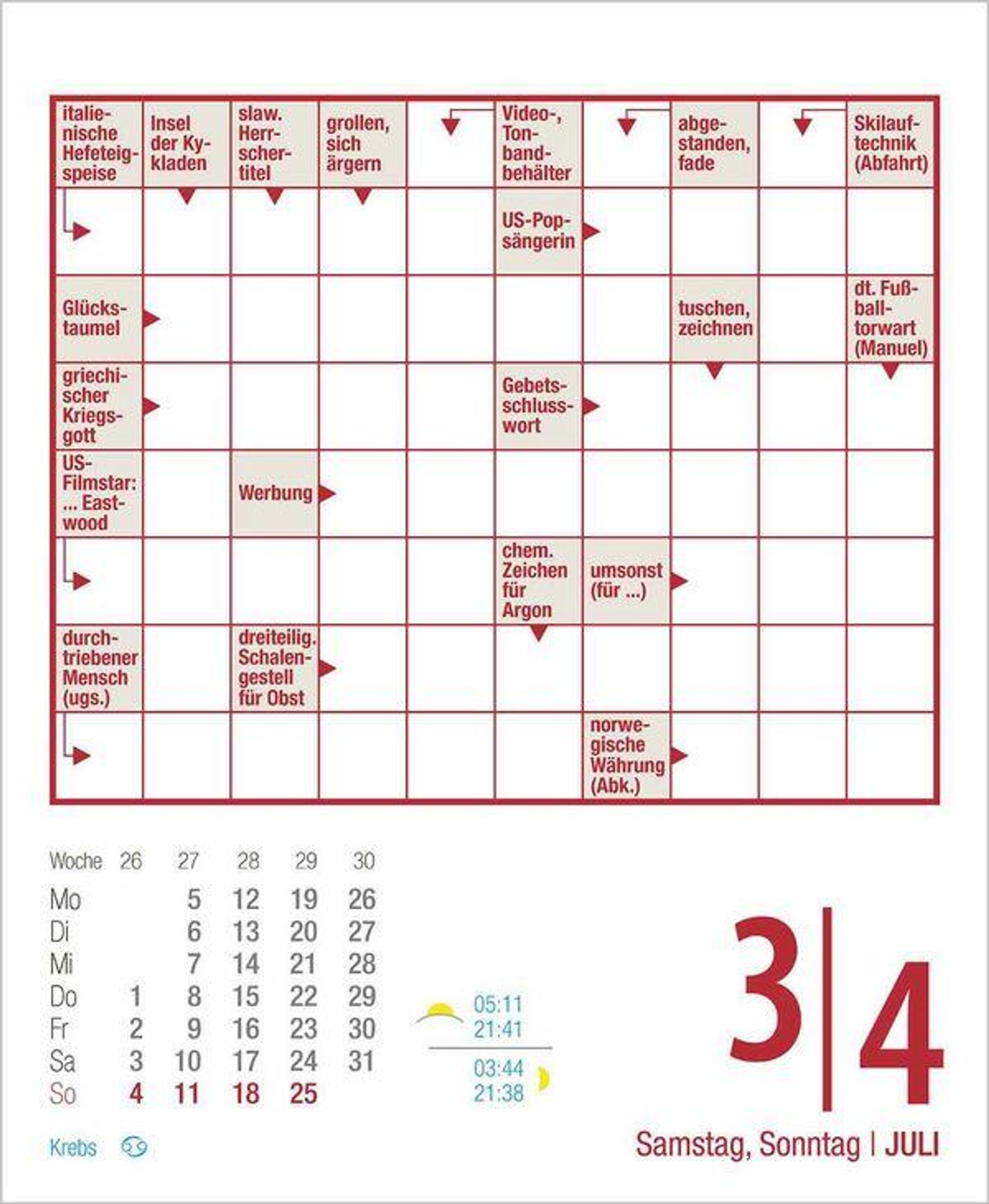 Kreuzworträtsel 2027 (Kalender)
