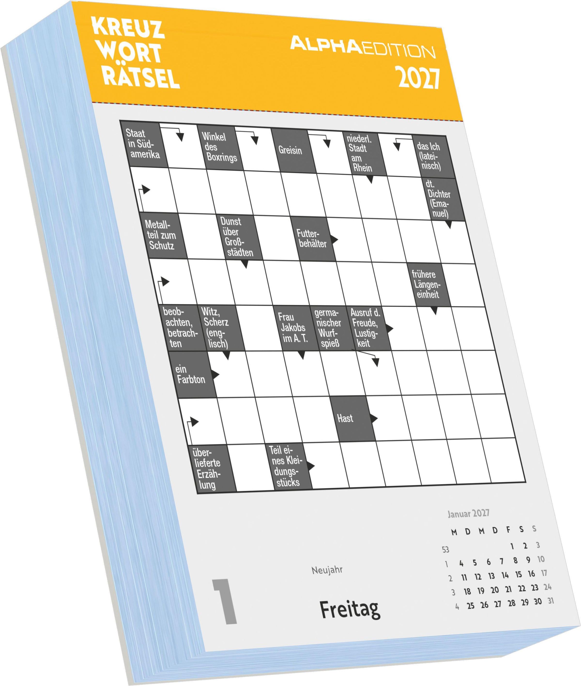 Der Alpha Edition Kreuzworträtsel Kalender 2027 ist das perfekte Geschenk für alle, die gerne rätseln und Tag für Tag neue Herausforderungen suchen.