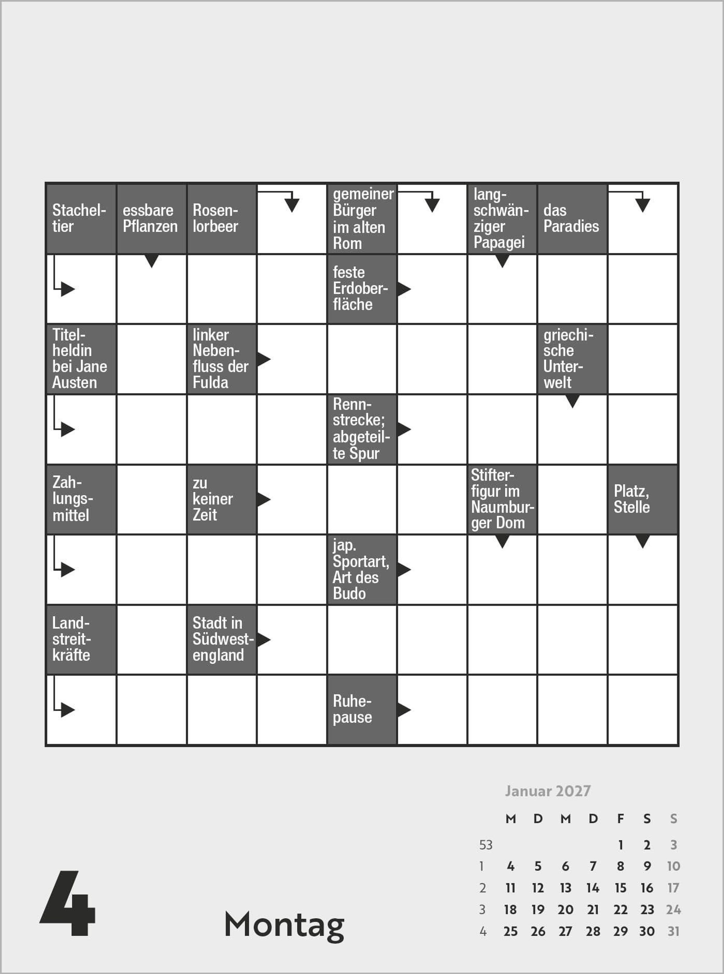 Kreuzworträtsel 2027 (Kalender)