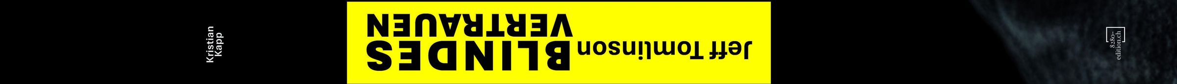 Text: „BLINDES VERTRAUEN“ und „Jert Tomeinson.“ Gelber Hintergrund, schwarze Buchstaben., Buch