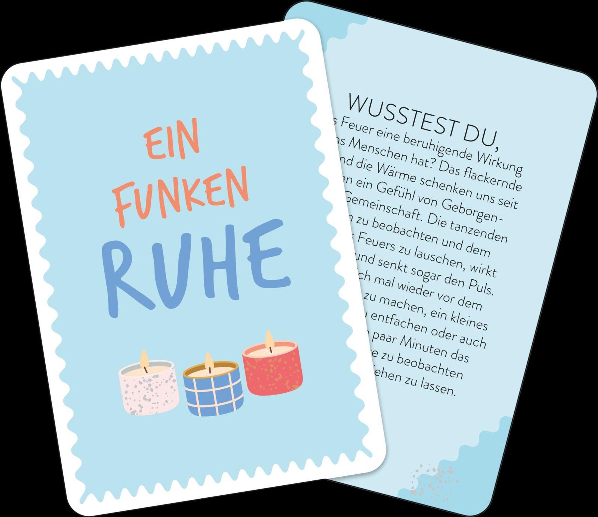 Modern und in buntem Design gestaltet, legt die hochwertige Kartenbox den Fokus darauf, die eigene Gesundheit mit Leichtigkeit zur Priorität zu machen. Als täglicher Begleiter können die Übungen zu mehr Gelassenheit, Balance, Energie und einer gestärken Mental Health verhelfen. Motiviert von kleinen wohltuenden Übungen kann man dem Stress wieder mit einem Lächeln entgegentreten. Lass dich von den Anregungen der Karten zu kleinen Auszeiten inspirieren, die dir Selbstbewusstsein, Besonnenheit und frische Lebensfreude schenken. So erschaffst du ein Ritual, das dich gegen jeden Stress wappnet, der da kommen mag.
