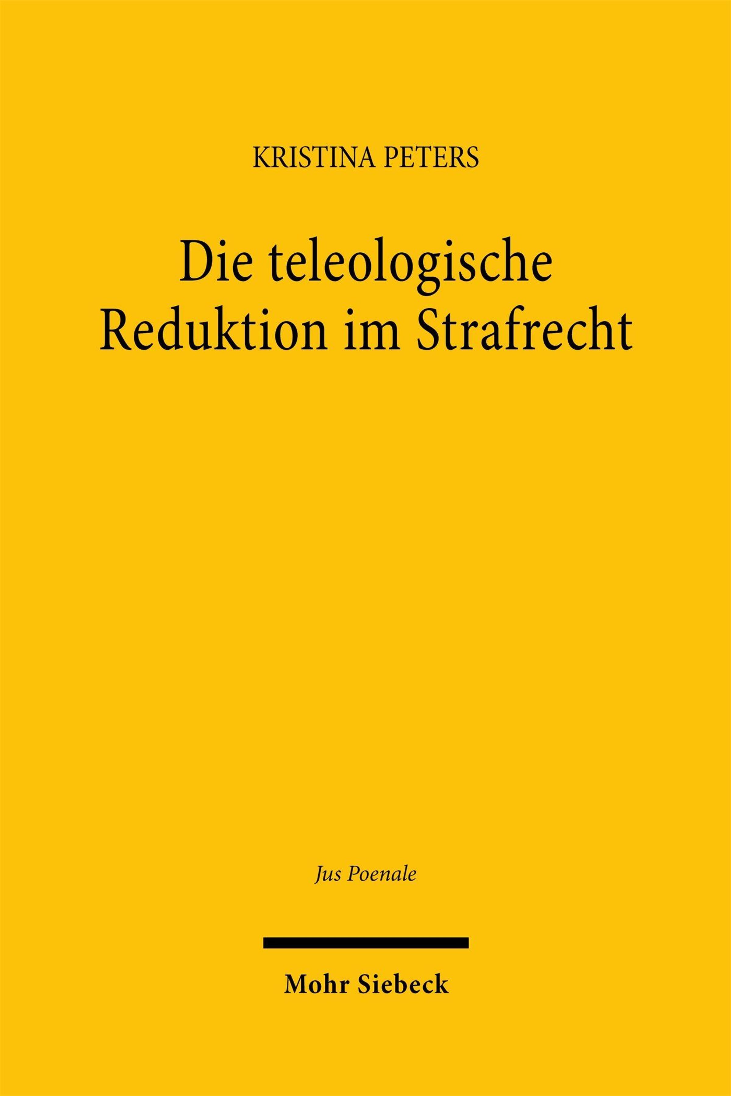 Teleological reduction is an established component of legal methodology, even though it is not without controversy. Particularly in criminal law, it has long enjoyed great popularity and, in many places, has led to modifications of the Criminal Code. Against this background, it is surprising that the theoretical foundations of this doctrine have so far scarcely been the subject of in-depth legal scholarship. The aim of the present study was to clarify the unresolved questions that remain regarding the use of this instrument in criminal law.