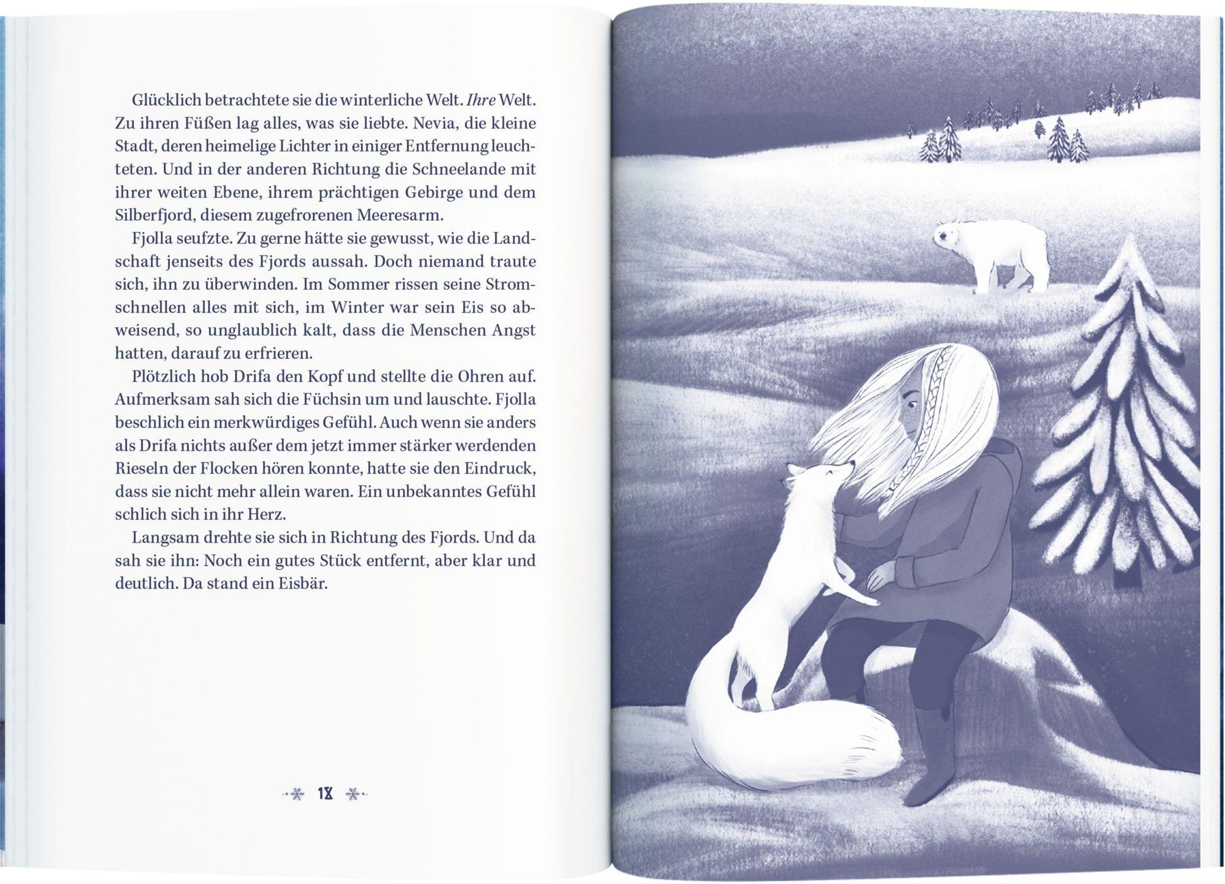 Doch der Winter verändert sich: Frostige Stürme peitschen über die Schneelande und überziehen alles mit einer unheilvollen Eisschicht, die Erde bebt - und immer wieder nähern sich Eisbären dem Ort. Fjolla spürt eine geheimnisvolle Verbindung zu den mächtigen Tieren. Aber erst zusammen mit ihren Freunden Yuki und Aubin kommt sie einem alten magischen Geheimnis auf die Spur, das einst ihre Familien entzweite. Die Schneelande sind in großer Gefahr und nur gemeinsam können die drei sich der Bedrohung stellen ...
