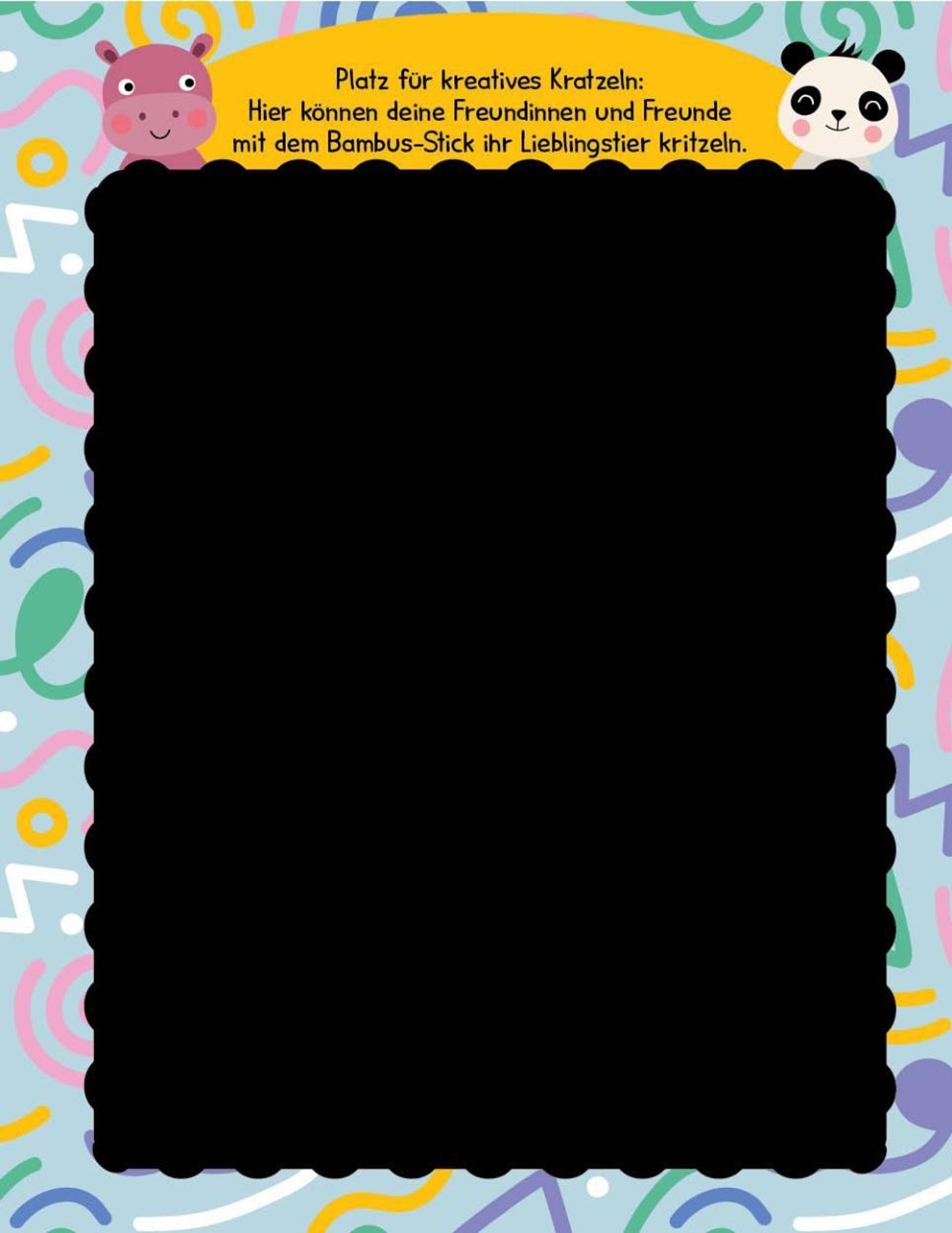 Das Highlight: 16 magische Kratzseiten mit tollen Effekten, die mit dem beiliegenden Bambus-Stick (praktisch am Bändchen befestigt, damit er nicht verloren geht) freigekratzt werden. So entstehen leuchtende Muster und Bilder, die das Buch zu einem einzigartigen Erinnerungs-Schatz machen. Auf deiner eigenen Seite kannst du erzählen, was du magst, wer deine besten Freundinnen und Freunde sind und welche Abenteuer du im Kindergarten erlebst.
