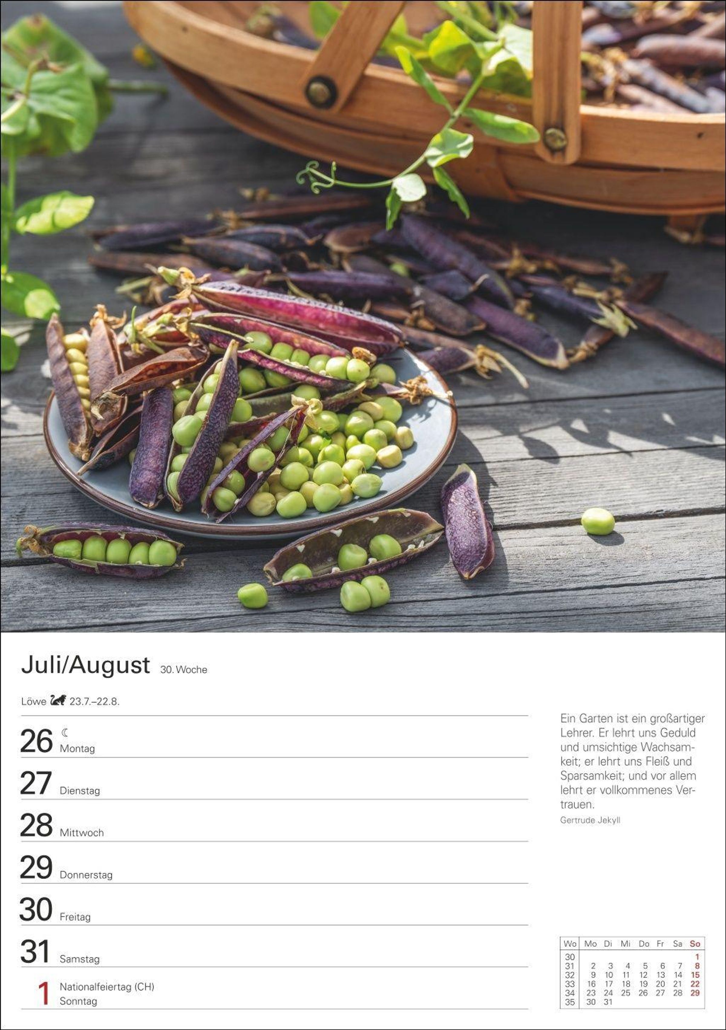 Blickfang für jede Küche: Kalender mit Food-Fotografien von bunten Früchten, saisonalem Gemüse und wöchentlich neuen leckeren Rezeptideen auf der Rückseite