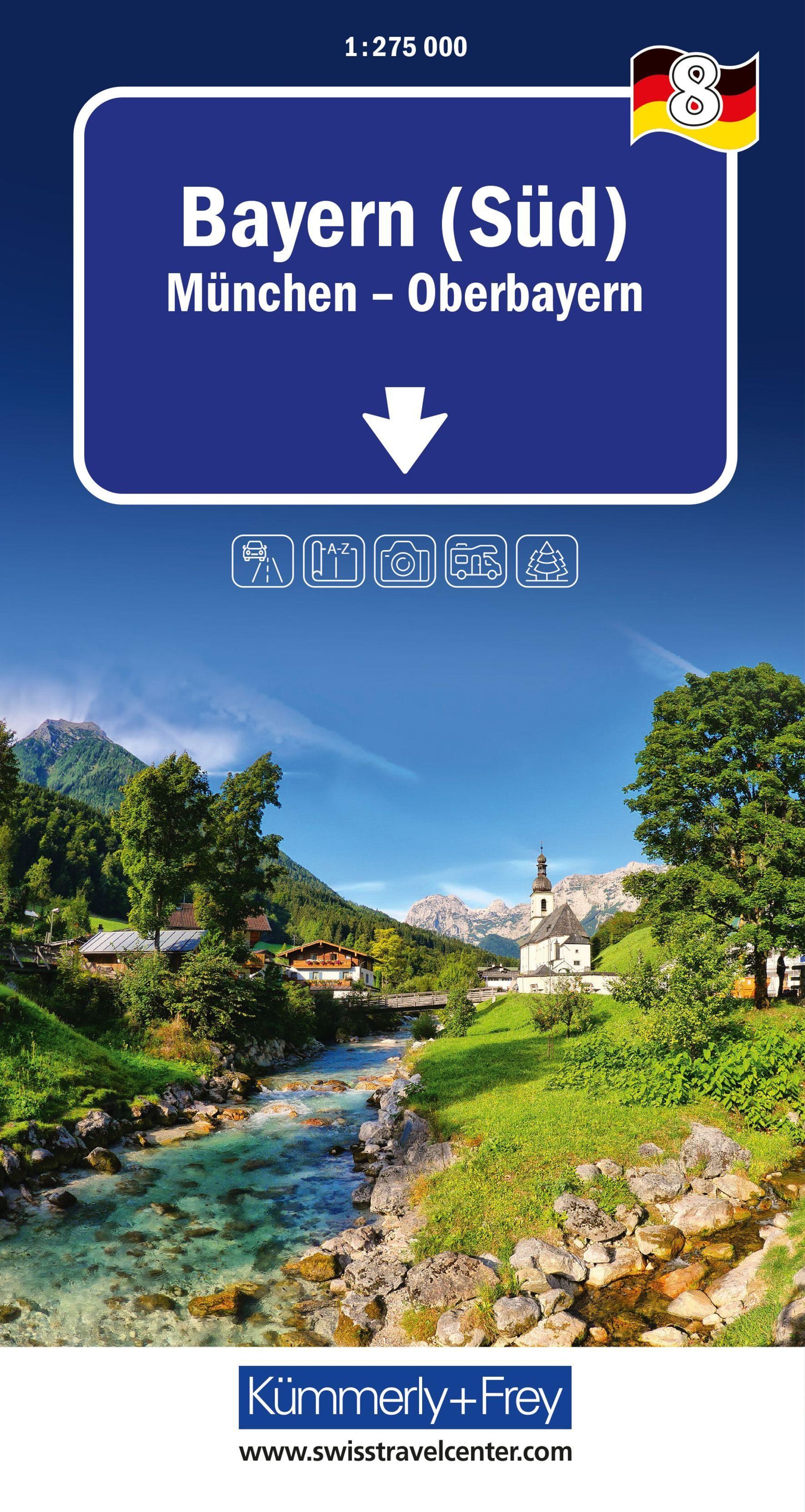 Kümmerly+Frey Regional-Strassenkarte 8 Bayern Süd 1:275.000