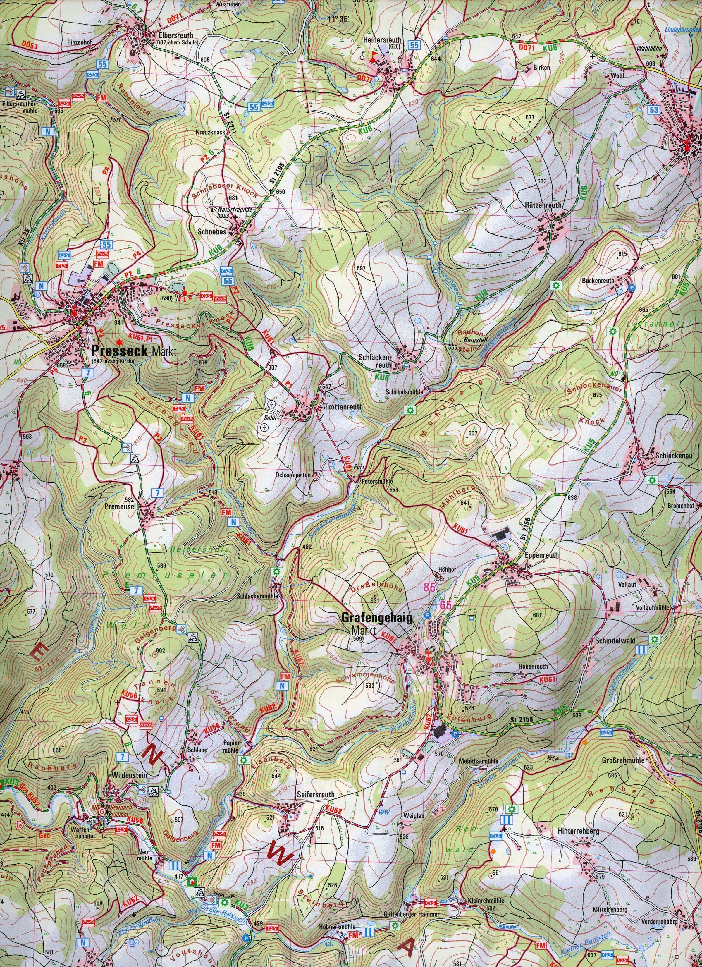 Kartenblatt ATK25-C11 Kulmbach: REGION: Oberfranken, Frankenwald ORTE: Kulmbach, Stadtsteinach, Neuenmarkt, Marktleugast, Untersteinach, Wirsberg, Presseck, Kupferberg, Himmelkron