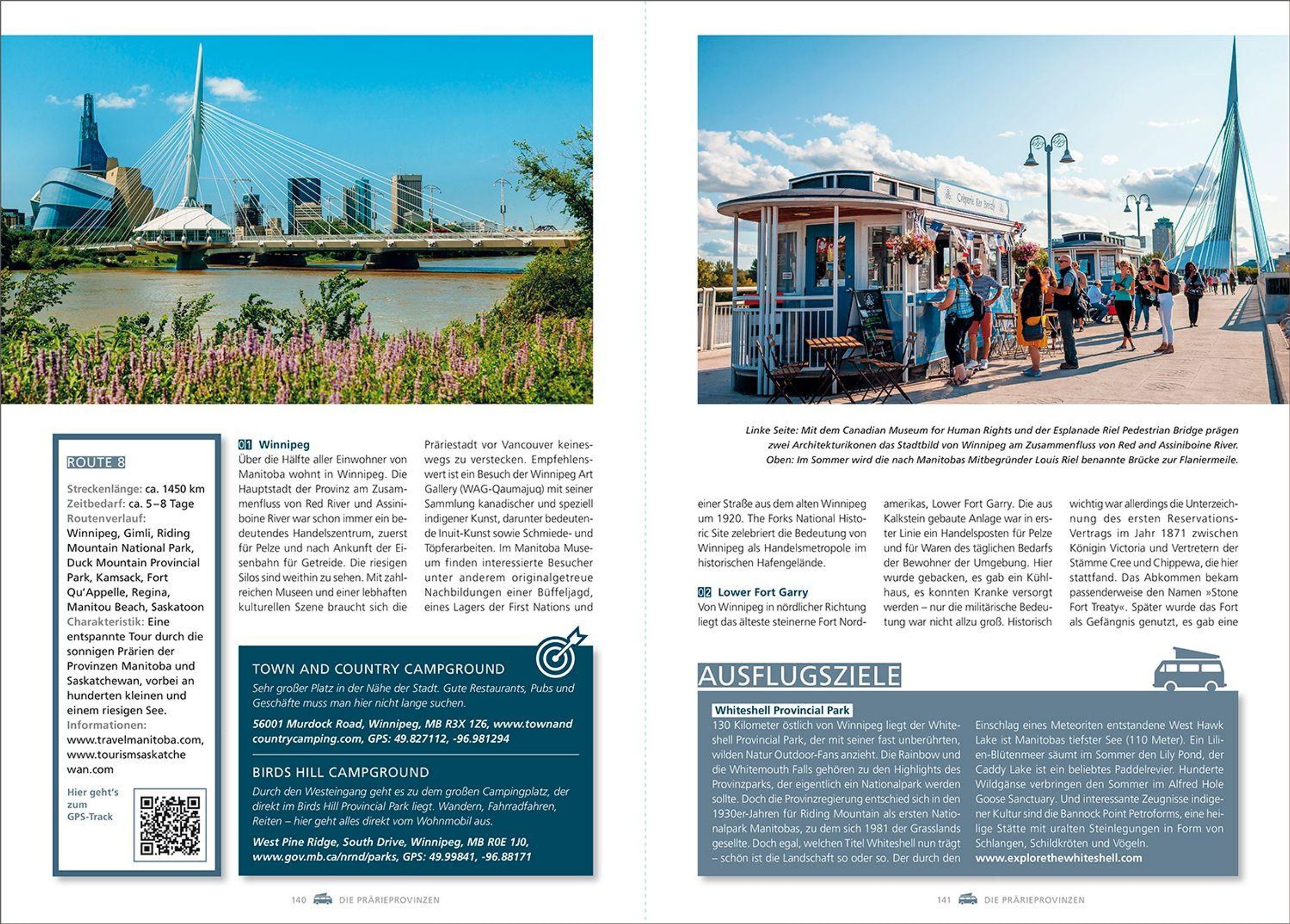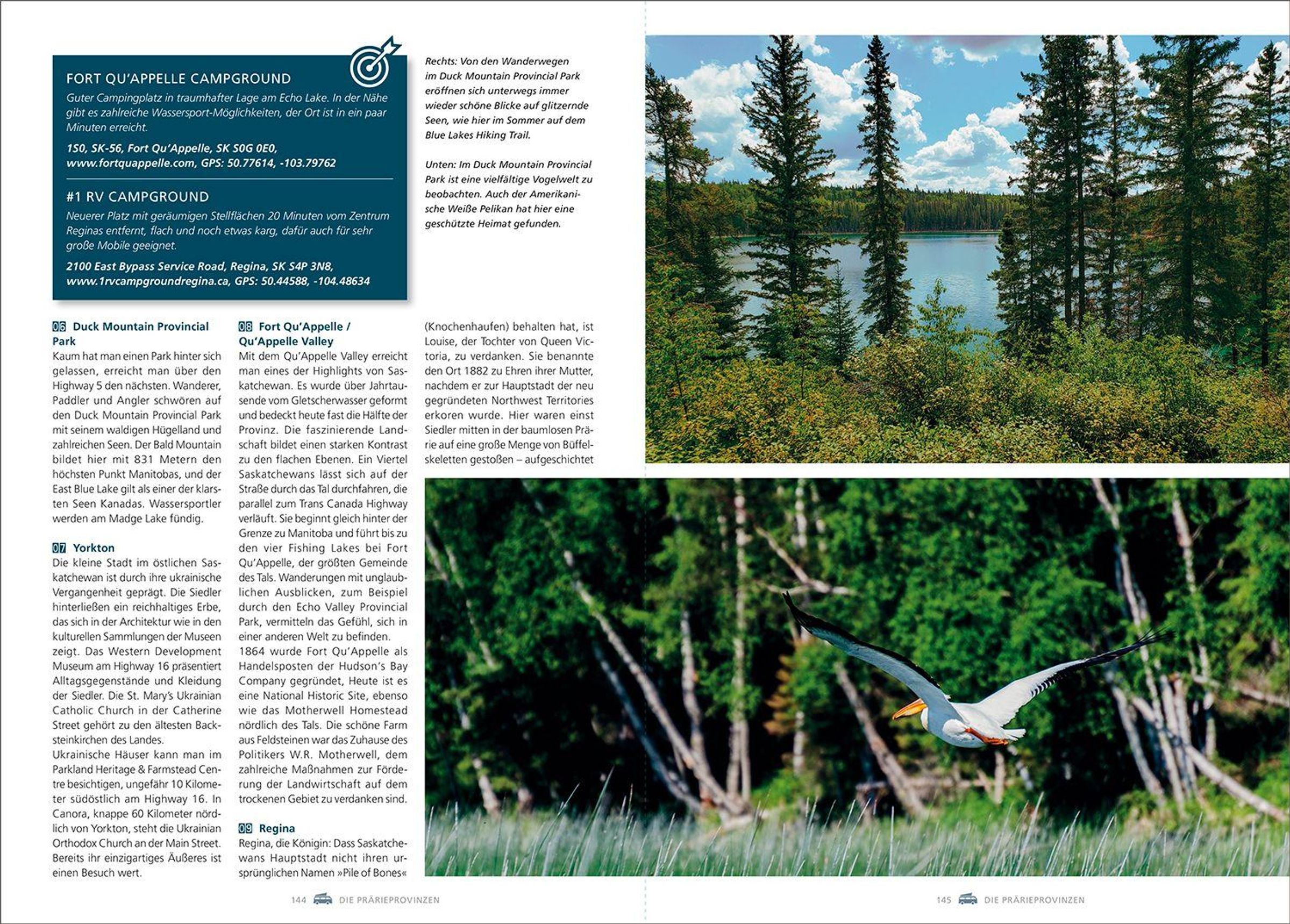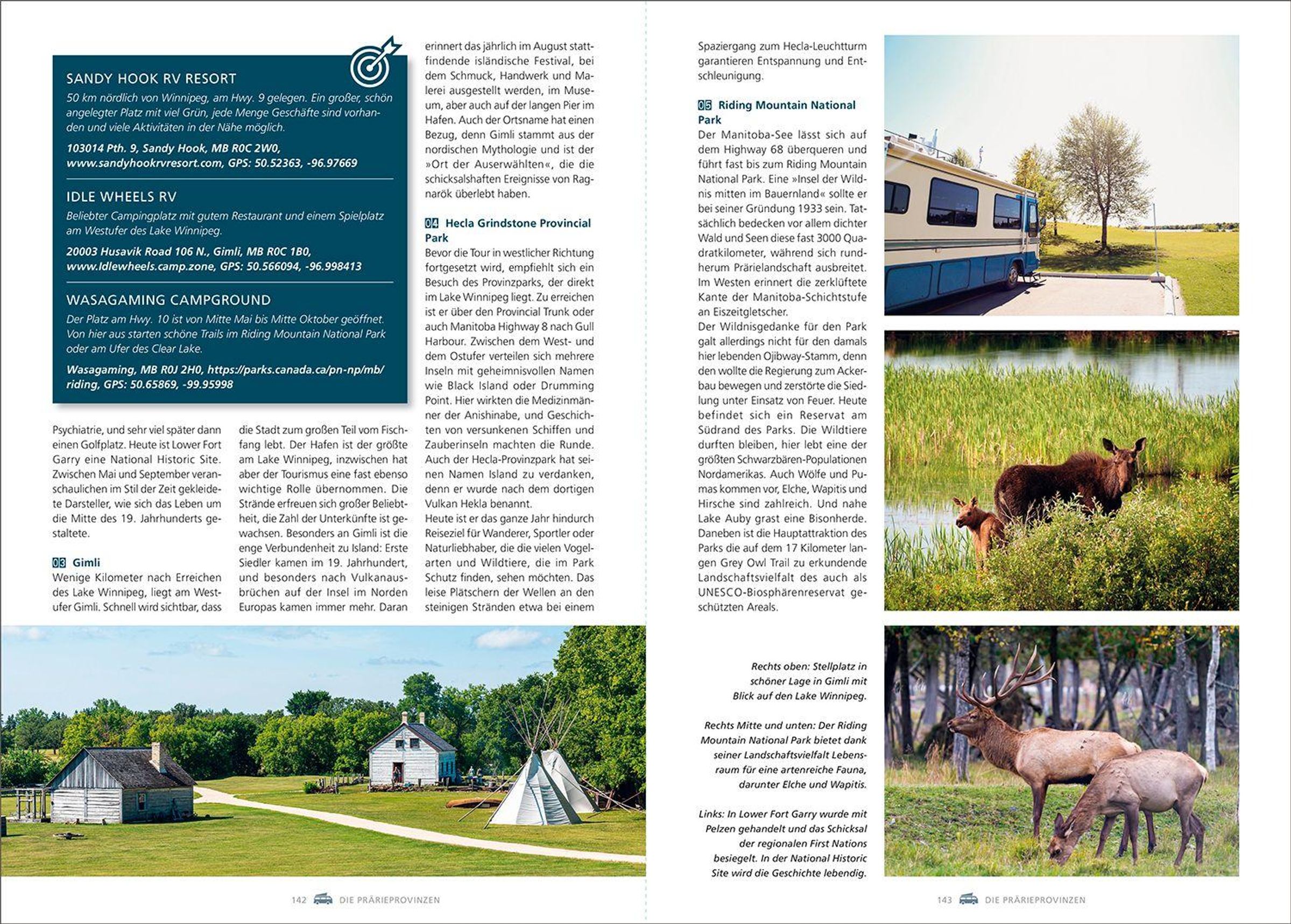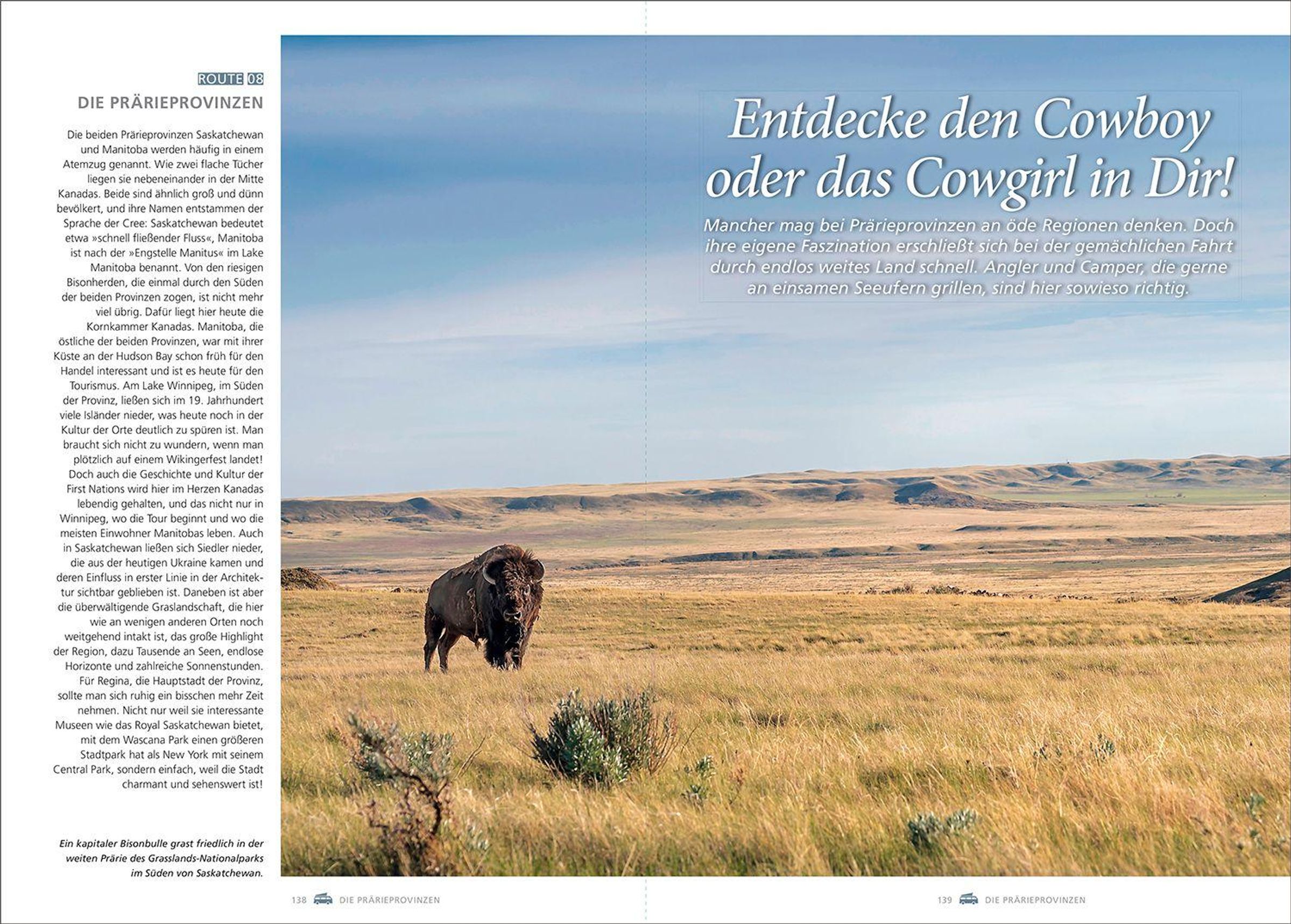 Durch traumhafte Natur geht es mit dem Camper durch Kanada. Mit dem Wohnmobil zu reisen verheißt eine Urlaubsfreiheit, die Hotelgästen verwehrt bleibt: einfach dort zu bleiben, wo das Herz und die Straße hinführen. Das Buch stellt 15 der spannendsten und schönsten Routen Kanadas vor und zeigt neben allem Sehens- und Wissenswerten auch die geeigneten Stellplätze und die jeweiligen Besonderheiten für Touren mit dem Wohnwagen auf. Eingebettet in wilder Natur der Nationalparks werden die idyllisch gelegenen Campingplätze angesteuert. Zwischen dichten Wäldern, schönen Küsten und glasklaren Seen lässt das Urlaubsfeeling nicht lange auf sich warten. Eindrucksvolle Bilder zeigen die Schönheiten der Region, Kästen vermitteln nicht nur Campinginfos, sondern auch Wissenswertes zu lohnenswerten Abstechern.