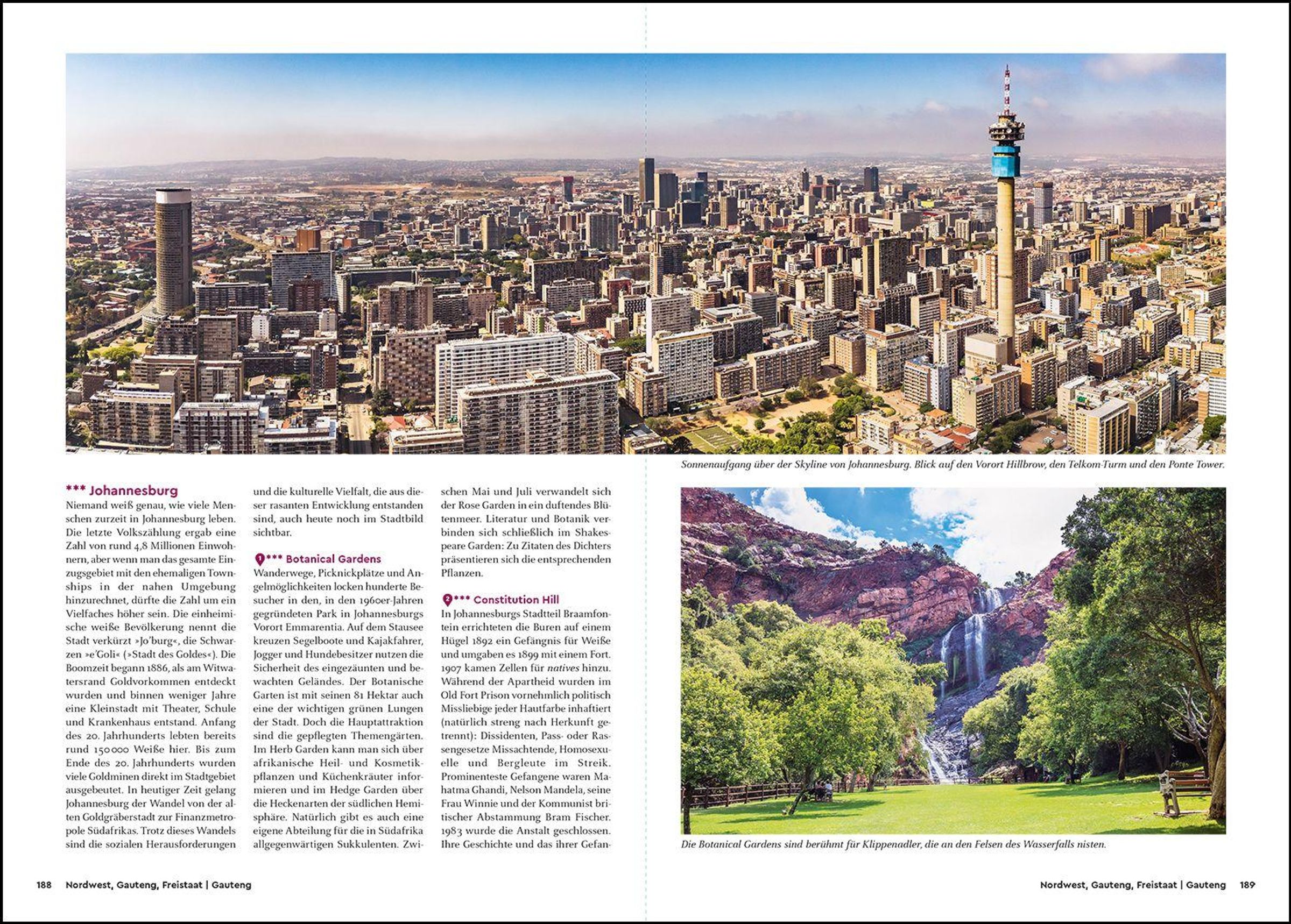 Abenteuer, Kultur und Natur - Südafrika hat alles! Nationalparke wie Kruger, Addo Elephant und Kgalagadi bieten unvergessliche Safari-Erlebnisse. Städte wie Kapstadt, Johannesburg oder Pretoria bestechen durch ihre lebendige Atmosphäre. Alle wichtigen Highlights des Landes werden in dem großen KUNTH Reisebuch "Unterwegs in Südafrika" vorgestellt. Bilder lassen staunen über die Vielfalt des Landes zwischen Urbanität, langer Historie, spektakulärer Landschaft und artenreicher Tierwelt. Themenseiten erzählen von berühmten Persönlichkeiten Südafrikas wie Nelson Mandela und Nadine Gordimer, bieten Wissenswertes zu den Big Five und weiteren heimischen Tieren, und berichten von den Traditionen verschiedener Ethnien. Mit fünf Routenvorschlägen - darunter zwei Trekkingtouren -, Stadtplänen und einem detaillierten Reiseatlas lässt sich die Reisevorbereitung erleichtern.
