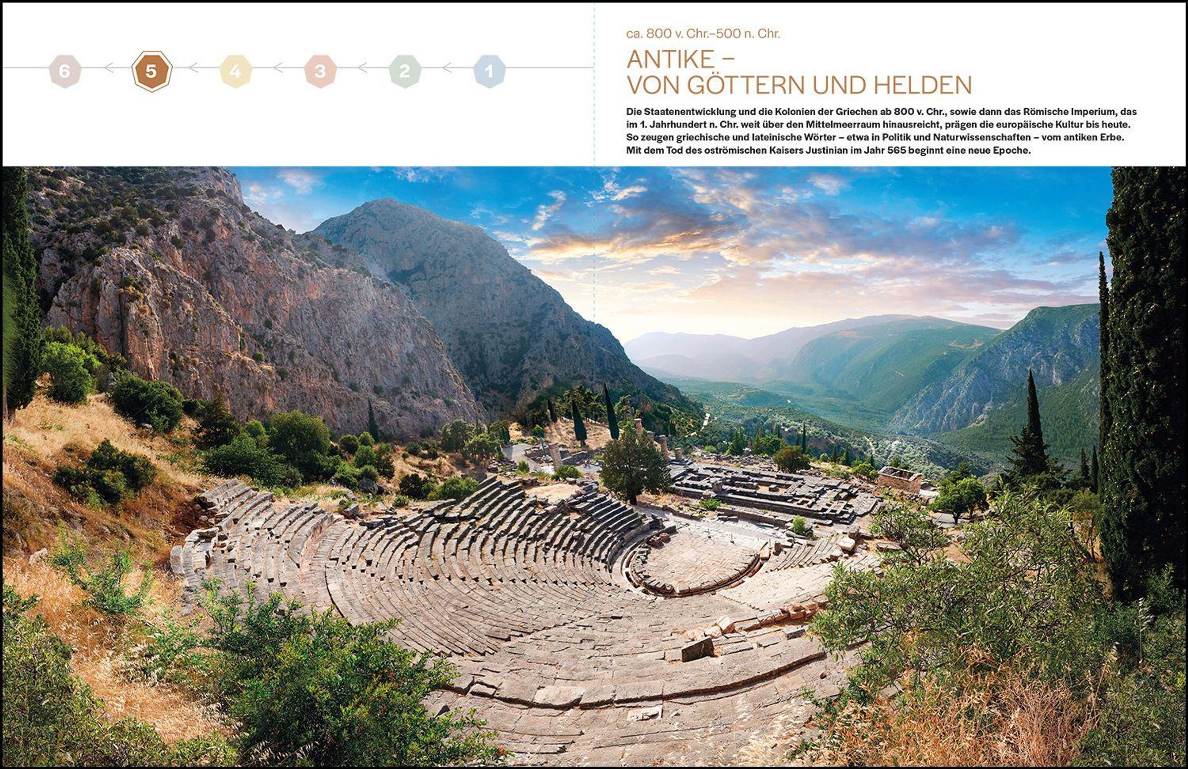 Zeitreisen zurück in die Vergangenheit durch Europa! Das KUNTH Reisebuch "Zeitreise" bietet faszinierende Einblicke in vergangene Zeiten. Echte Dinosaurierspuren lassen sich an der Jurassic Coast entdecken. Wikingersiedlungen und antike Tempel erzählen von mutigen Seefahrern und alten Zivilisationen. Barocke Schlösser lassen uns Reisende im Prunk vergangener Jahrhunderte lustwandeln. Futuristische Museen und Theater schlagen die Brücke zur Gegenwart. Die Special-Seiten im Buch bieten Hintergrundinfos zu Sagen und Legenden, berühmten Persönlichkeiten und geschichtlichen Fakten. Ein Muss für Geschichtsfans!