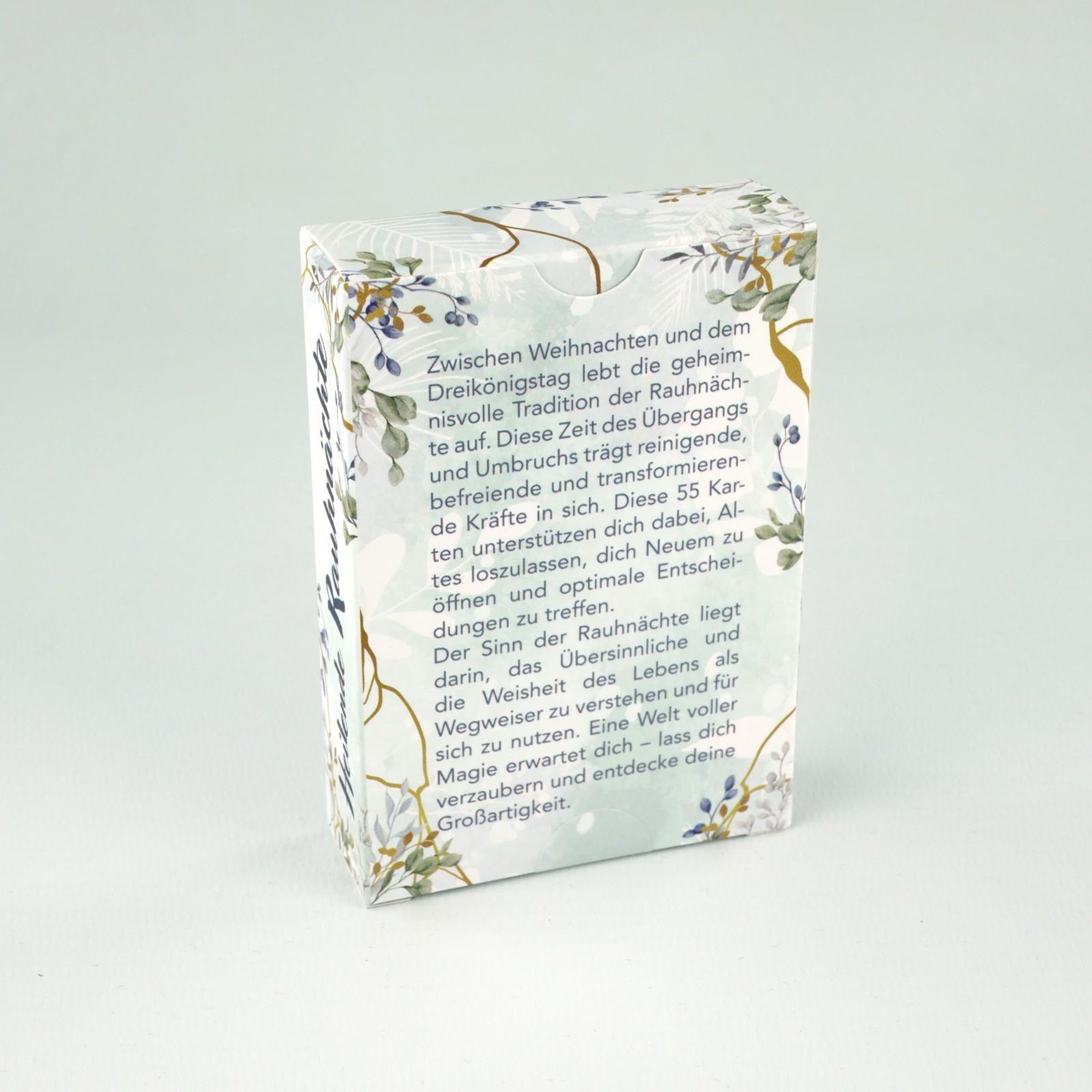 Zwischen Weihnachten und dem Dreikönigstag lebt die geheimnisvolle Tradition der Rauhnächte auf. Diese Zeit des Übergangs und Umbruchs trägt reinigende, befreiende und transformierende Kräfte in sich. Diese 55 Karten unterstützen dich dabei, Altes loszulassen, dich Neuem zu öffnen und optimale Entscheidungen zu treffen.