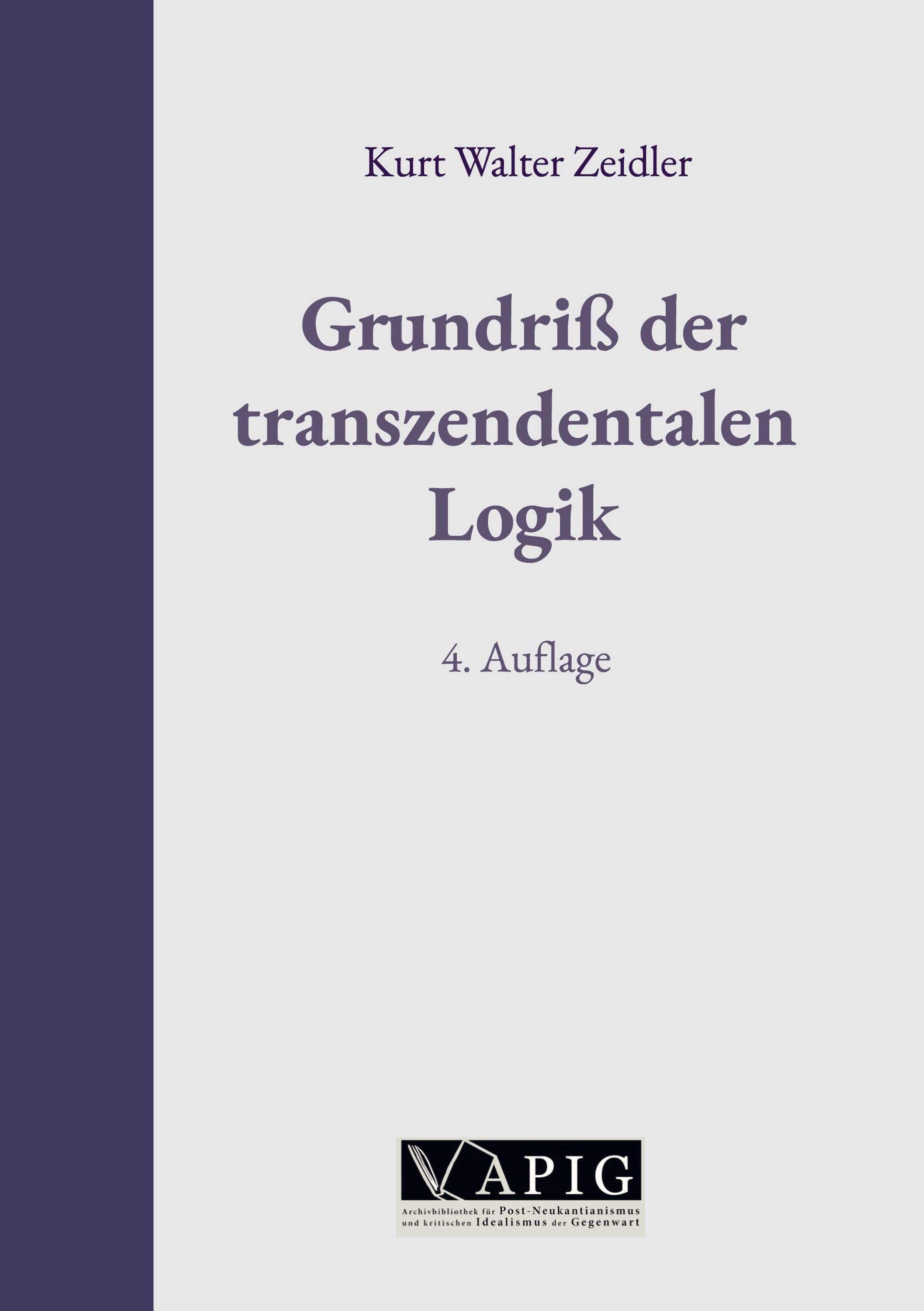 Kurt Walter Zeidler: Grundriß der transzendentalen Logik, Gebunden