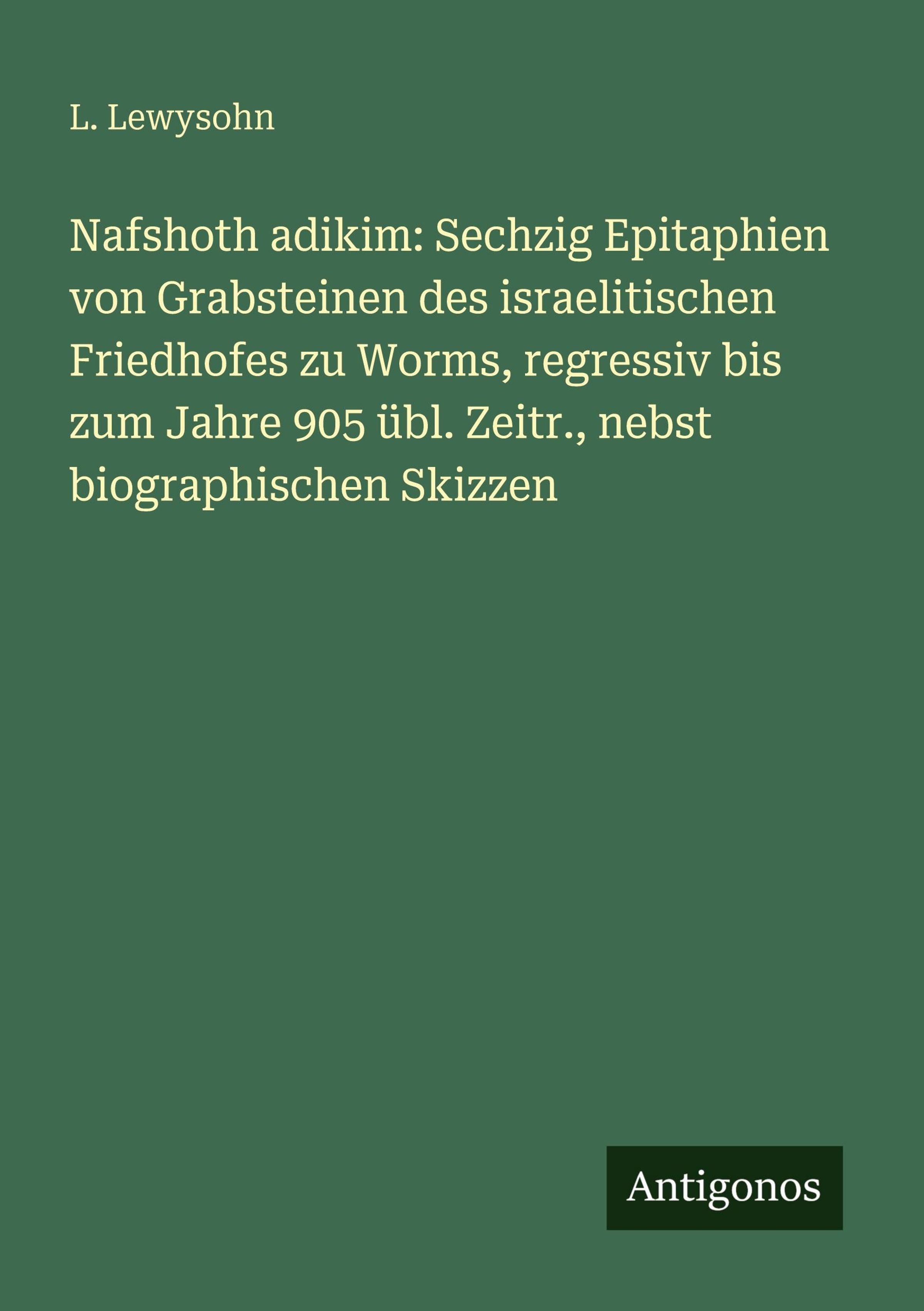 Nafshoth adikim: Sechzig Epitaphien von Grabsteinen des israelitischen Friedhofes zu Worms, regressiv bis zum Jahre 905 übl. Zeitr., nebst biographischen Skizzen
