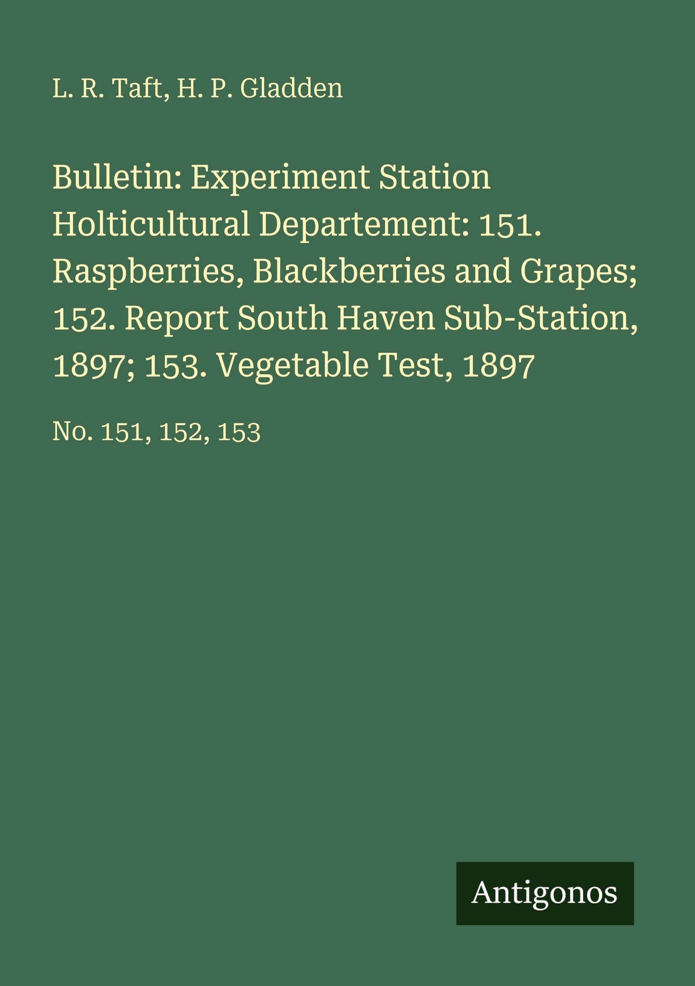 L. R. Taft: Bulletin: Experiment Station Holticultural Departement: 151. Raspberries, Blackberries and Grapes;..., Kartoniert / Broschiert