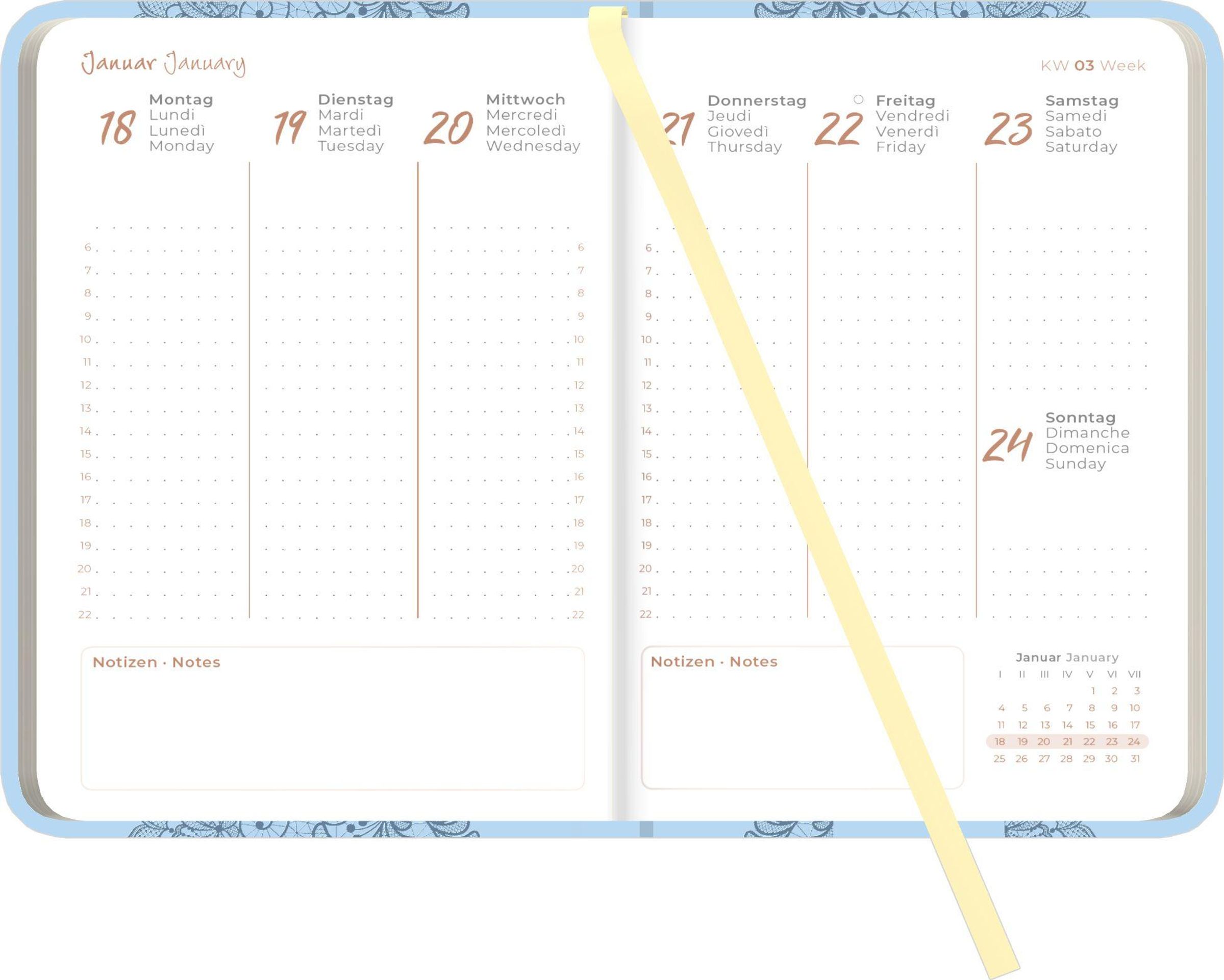 Mit dem Lady Journal Deluxe Hellblau 2027 haben Sie einen stilvollen Kalender, der Sie zuverlässig durchs Jahr begleitet -- praktisch, elegant und hochwertig verarbeitet.