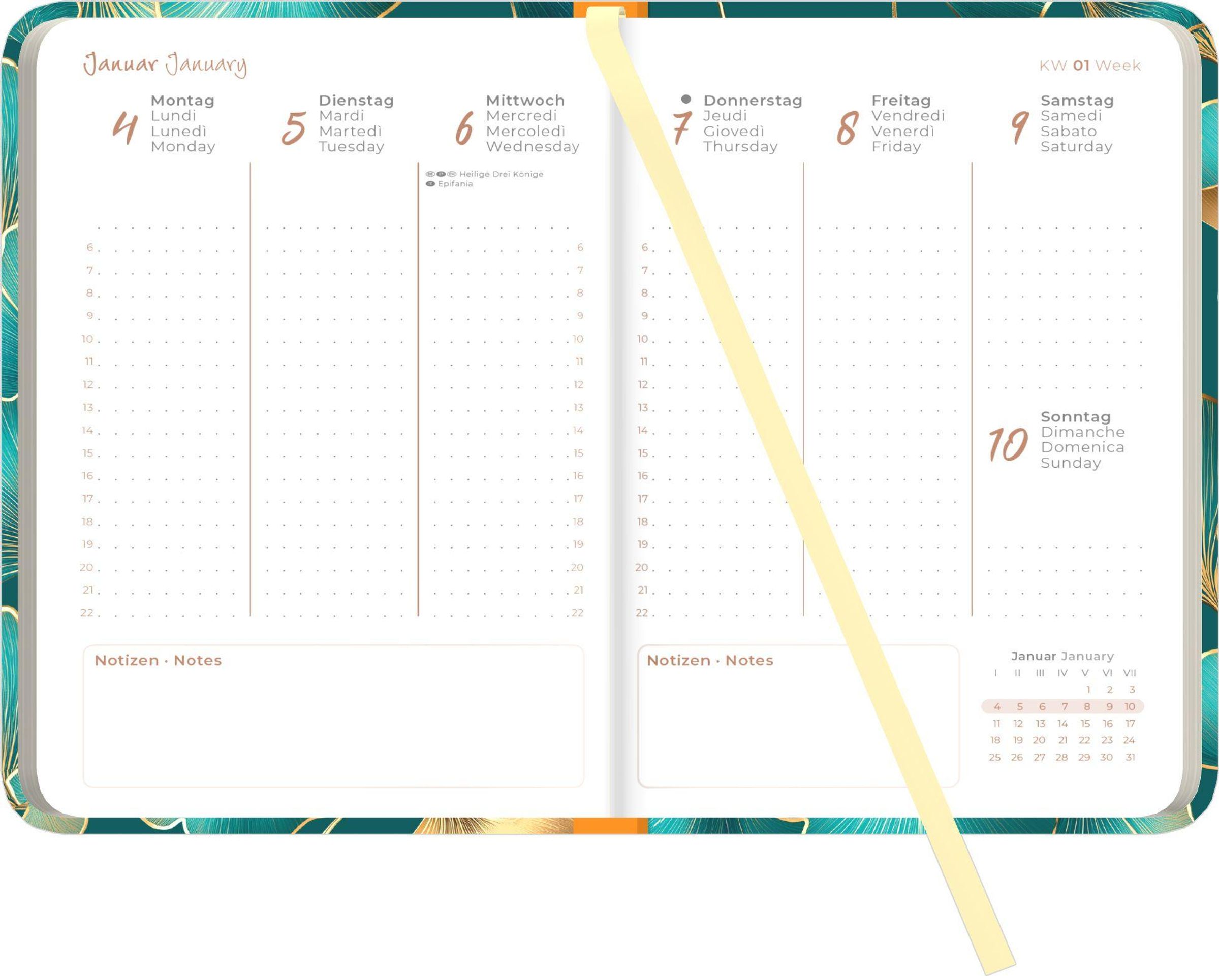Ob für Beruf, Studium oder Freizeit -- das Lady Journal Ginkgo 2027 ist Ihr stilvoller Begleiter, der Organisation, Inspiration und praktische Extras vereint.