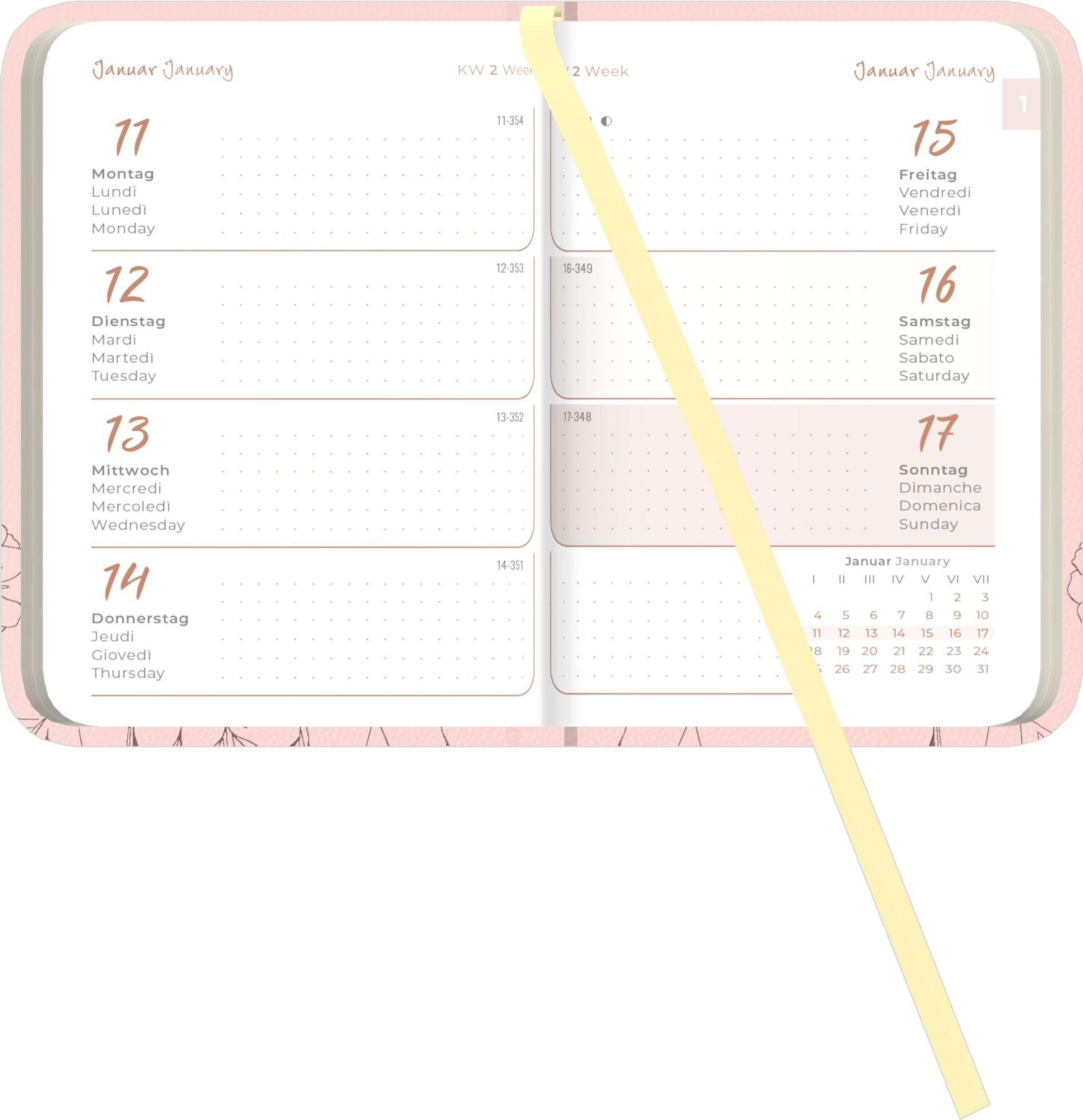 Das Alpha Edition Lady Journal Mini Deluxe Salmon 2027 kombiniert stilvolles Design mit einer praktischen Wochenplanung im kompakten Format. Der weiche, lederähnliche Tucson-Einband mit edler Motivprägung macht diesen kleinen Kalender zu einem edlen Begleiter für unterwegs. Das übersichtliche Kalendarium bietet Platz für Termine, Geburtstage und kurze Notizen, ergänzt durch zahlreiche Zusatzinformationen und nützliche Übersichten.