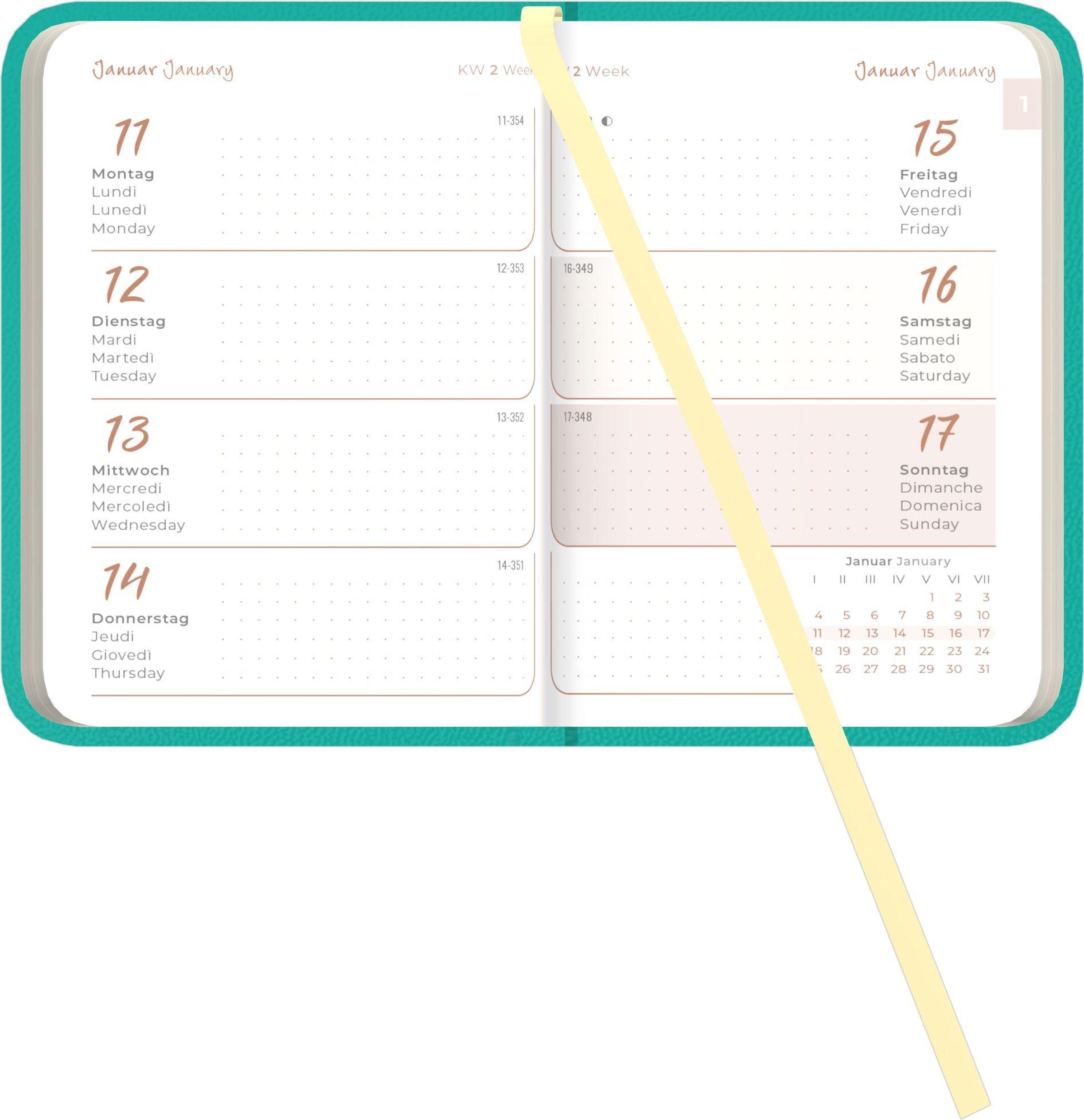 Mit dem Lady Journal Mini Deluxe Türkis 2027 organisieren Sie Ihre Termine stilvoll im handlichen Format -- perfekt für den Alltag und auf Reisen.