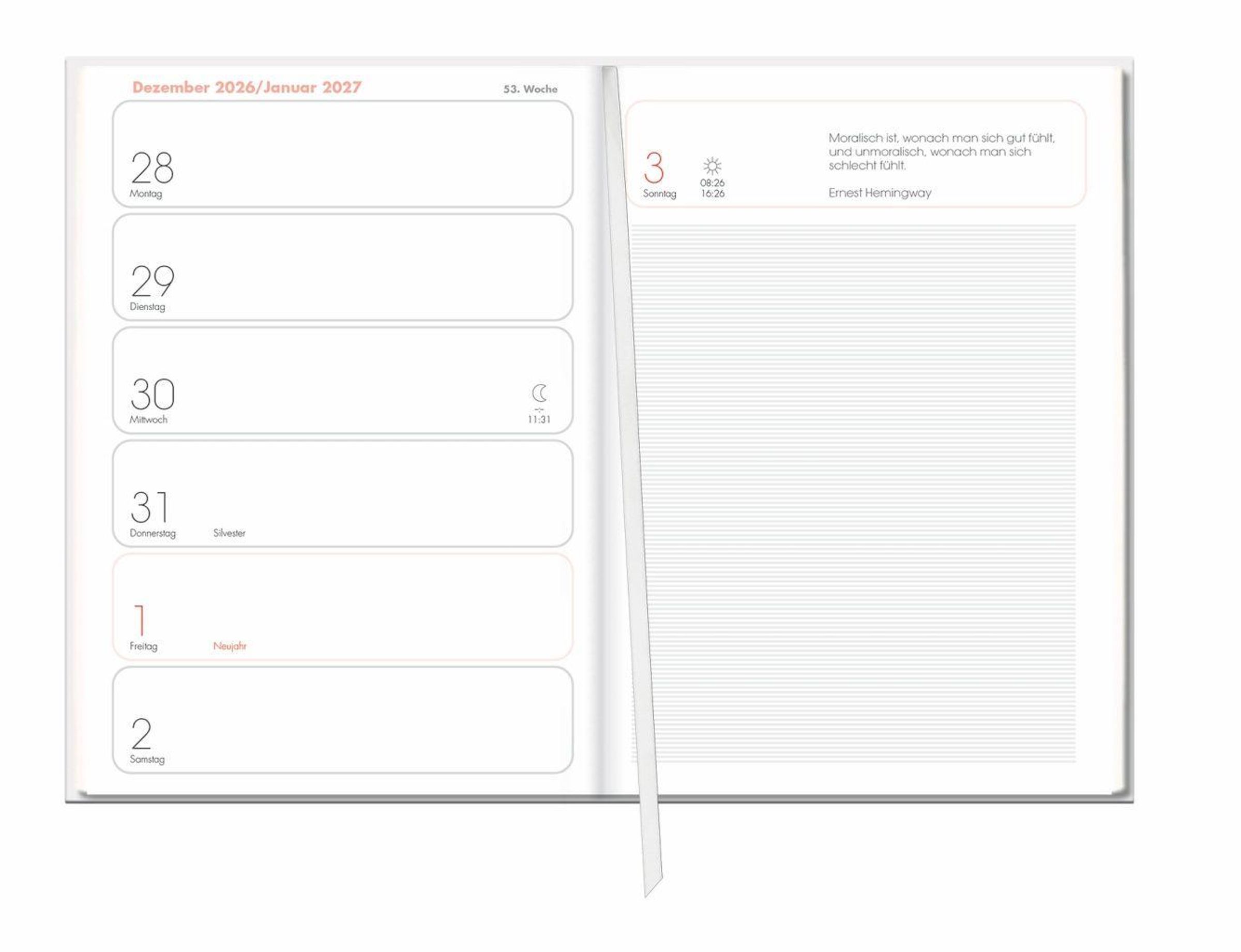 Beliebt seit über 45 Jahren: Handlicher Planer im A6-Format mit Lesebändchen