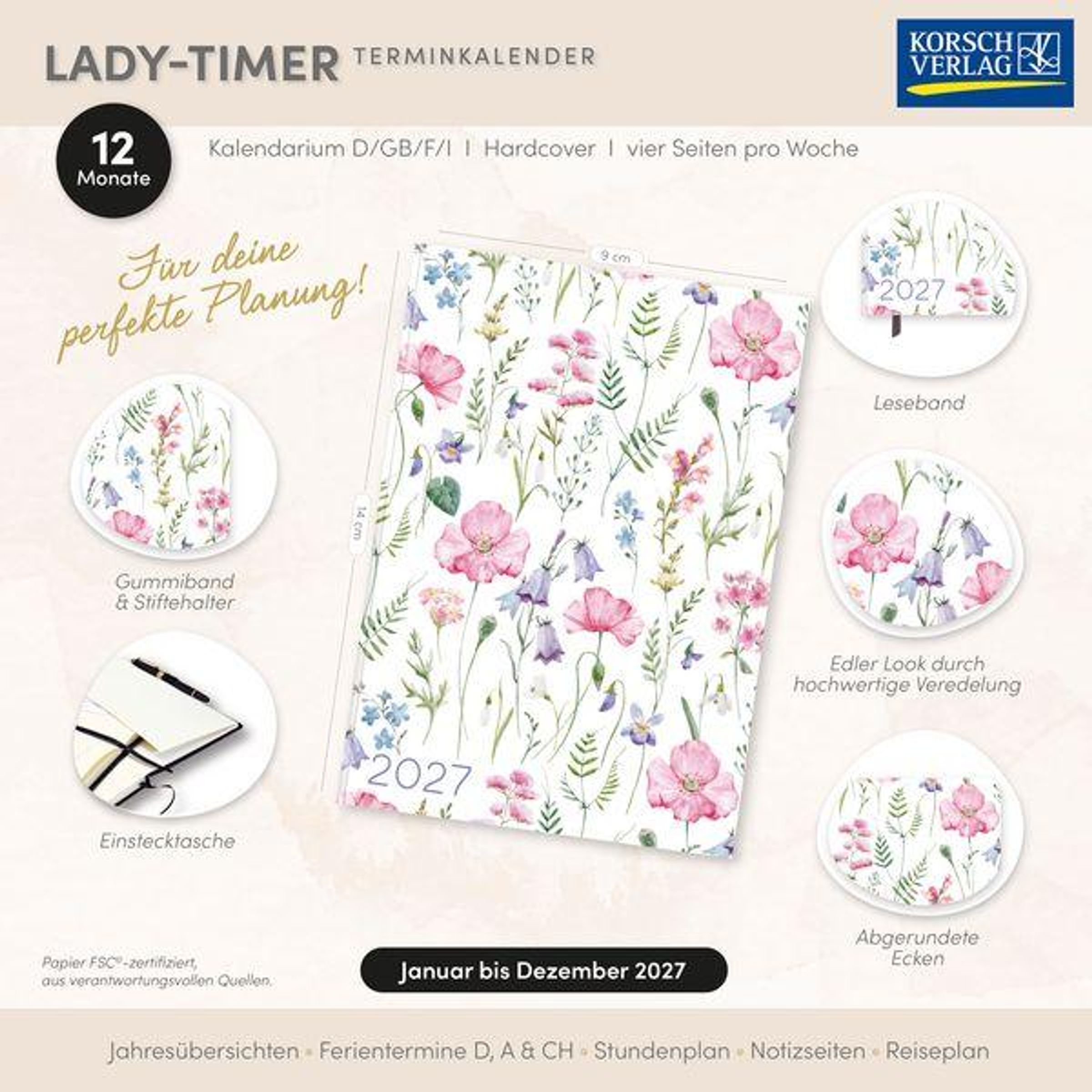 Der praktische Taschenplaner für die moderne Frau mit 4 Seiten pro Woche zum Eintragen und hochwertigem Einband mit einem floralen Motiv.
