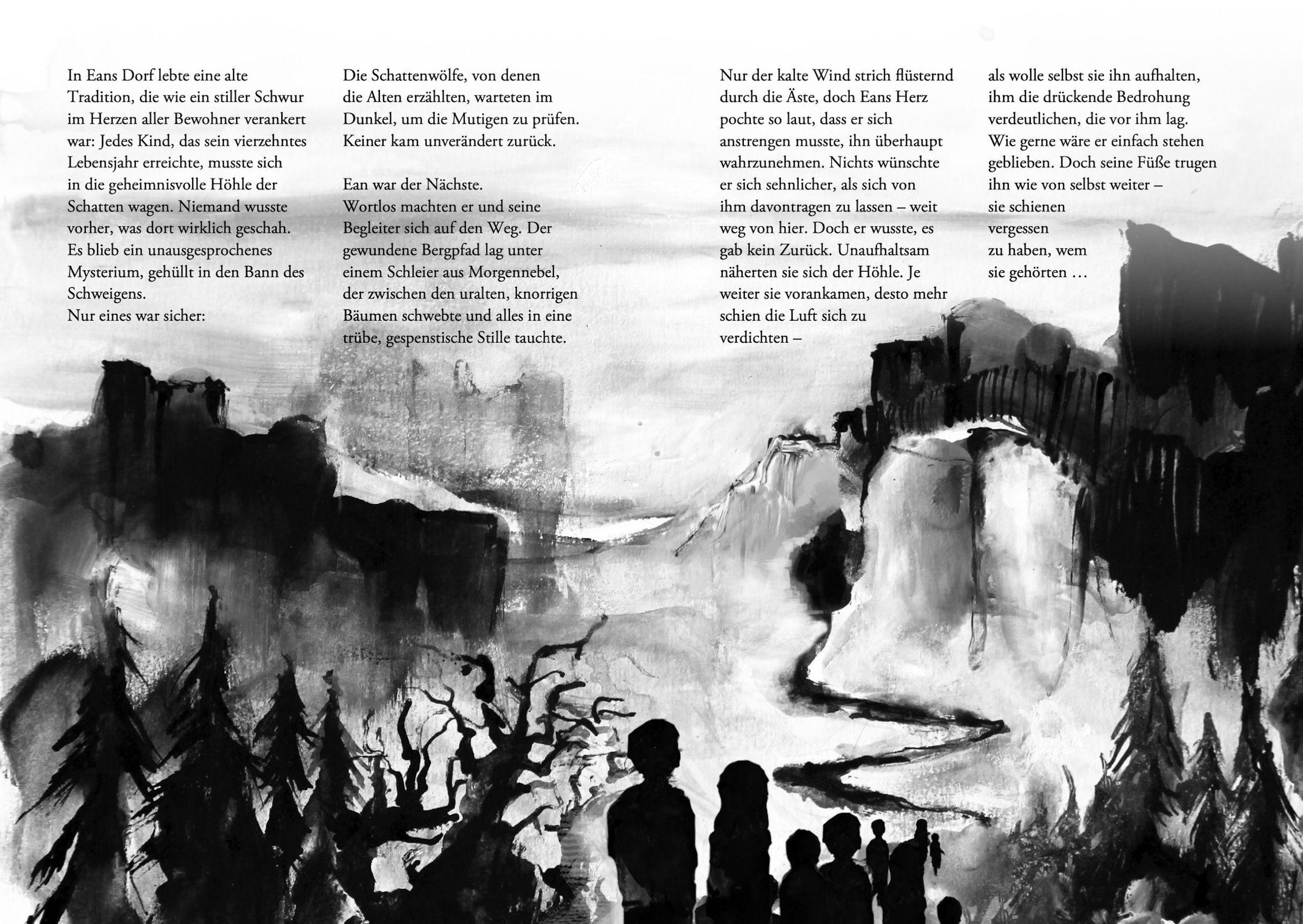 In Eans Dorf gibt es eine uralte Tradition: Jedes Kind muss, um erwachsen zu werden, in die geheimnisvolle Höhle der Schatten eintreten. Dort lauern die gefürchteten Schattenwölfe - finstere Gestalten, die jeden verfolgen, der sich in die Dunkelheit wagt.