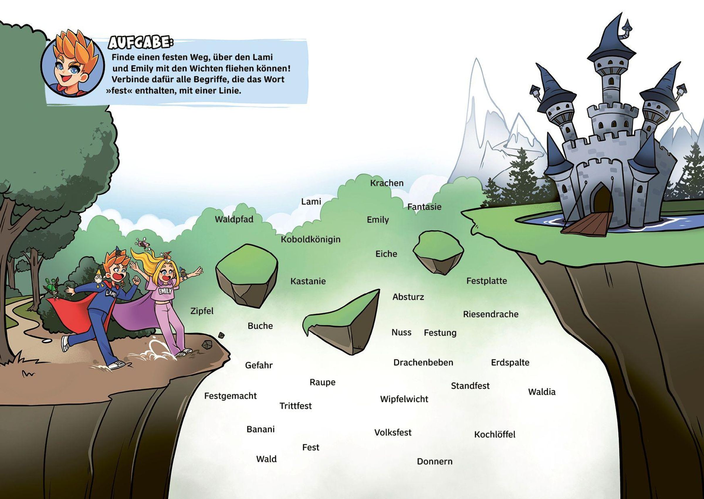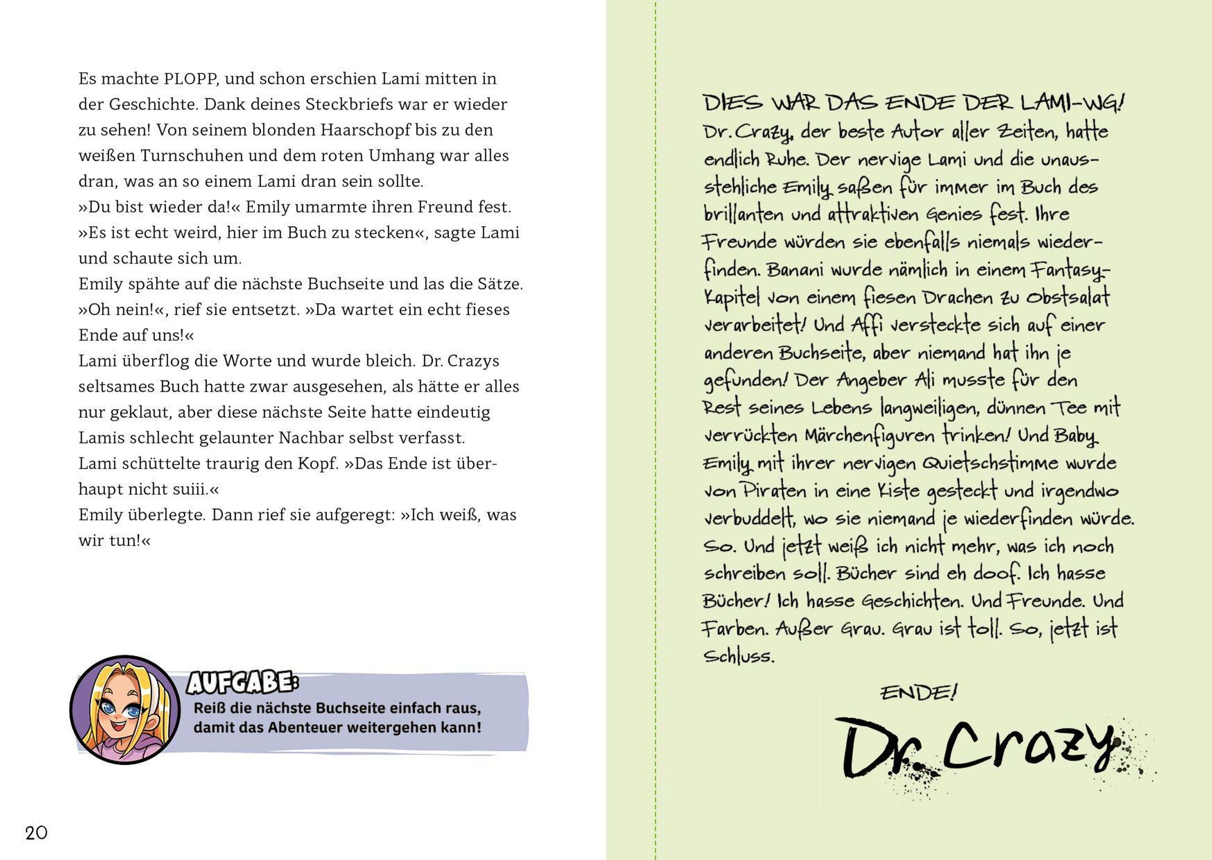Ein gehacktes Buch, in dem Straßen schmelzen, Wörter explodieren und plötzlich alles auf dem Kopf steht - willkommen in Lamis verrücktem Abenteuer! Lami, Emily, Banani und Co. sind gefangen: Dr. Crazy hat das Buch gehackt! Auf dem Weg hinaus entdecken sie eine absurde Welt nach der anderen. Zeichne Wege, löse Rätsel und triff Entscheidungen - nur durch deine kreative Kraft haben Lami und seine Freund*innen eine Chance, sich aus dem Buch zu befreien!
