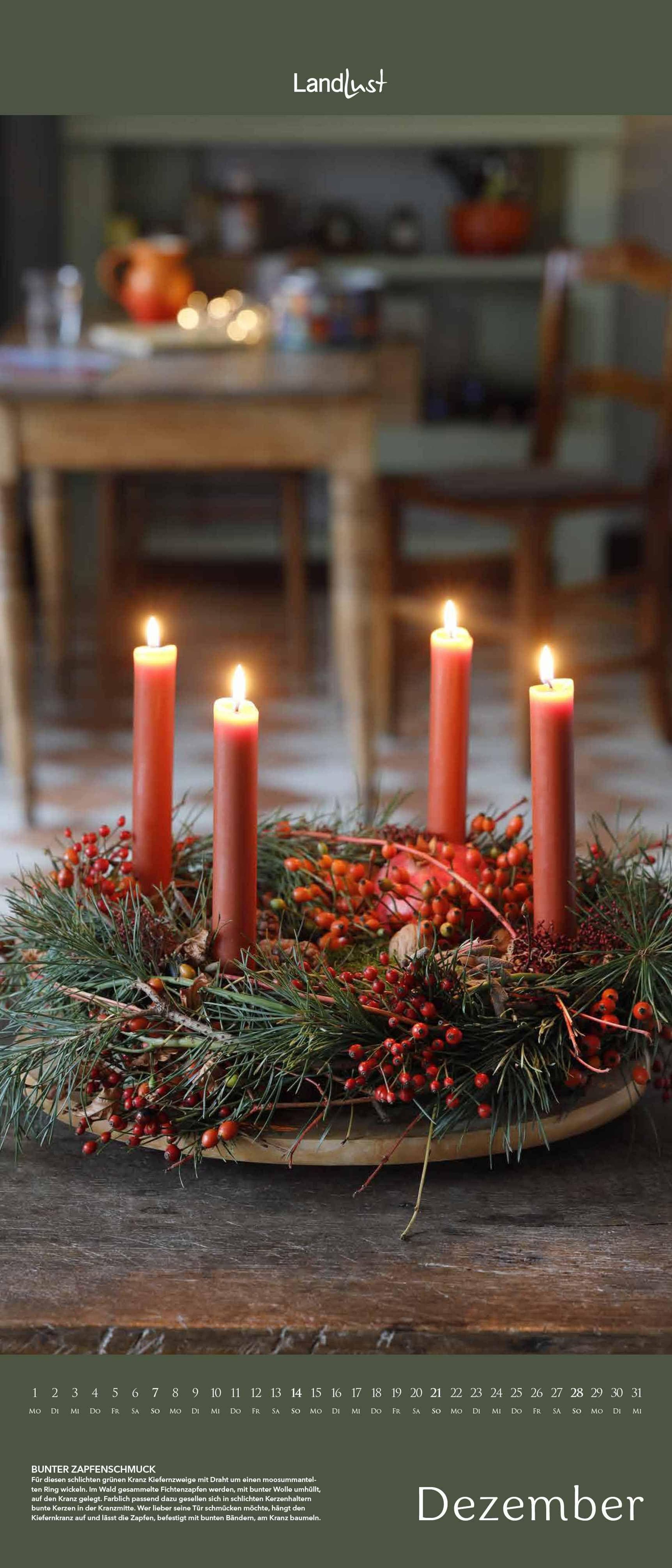 Jeden Monat ein neues Highlight -- von zarten Frühlingsblüten bis zu üppigen Sommerbouquets. Dieser stilvolle Landlust Vertikal-Kalender 2026 begeistert mit leuchtenden Farben, gestochen scharfer Fotografie und einem Format von 30×70 cm -- perfekt für schmale Wandflächen und Nischen.