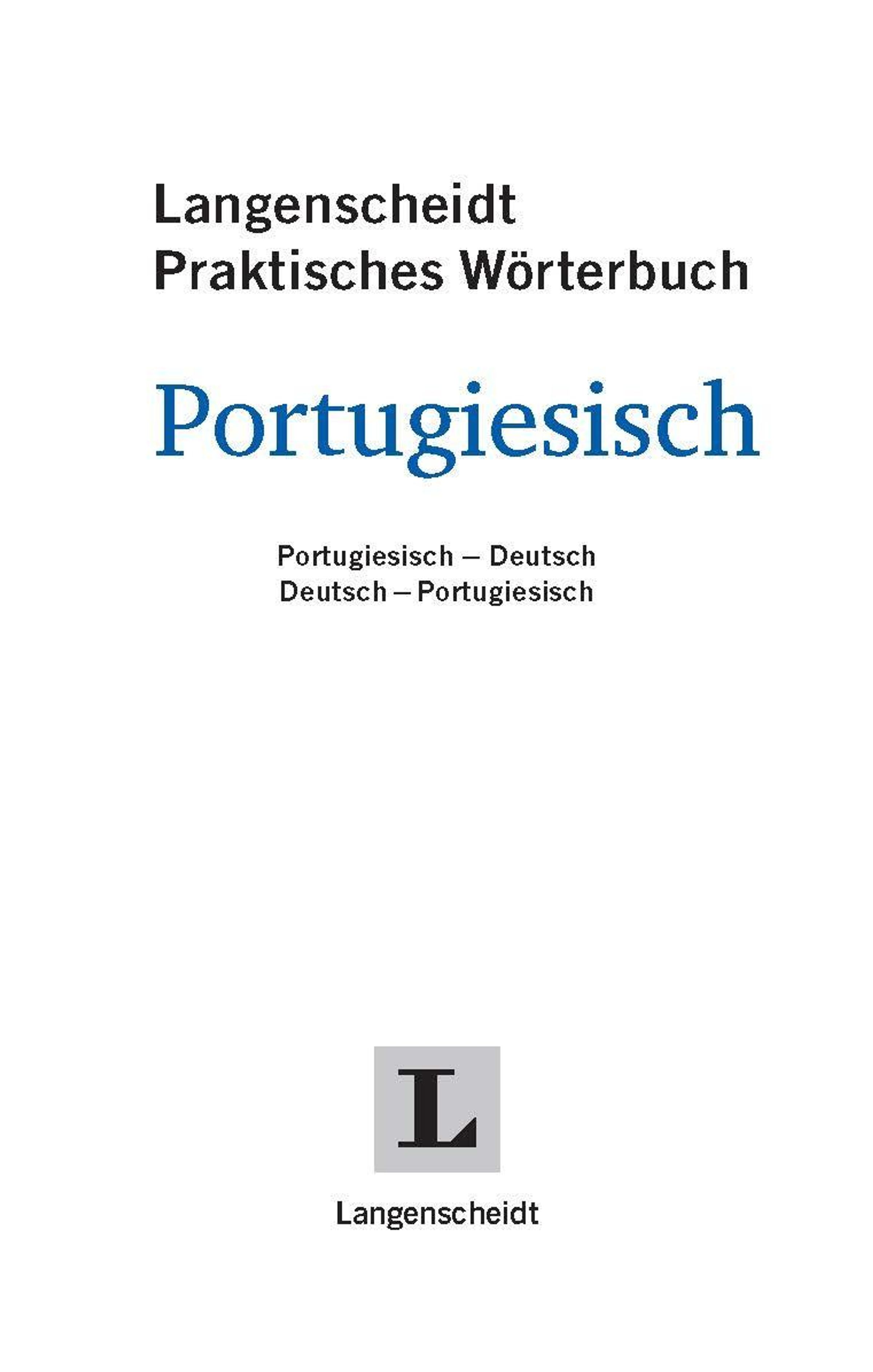 - Das Praktische Wörterbuch Portugiesisch enthält alle Stichwörter und Wendungen, die Sie für den Alltag und für Reisen nach Portugal oder Brasilien benötigen.