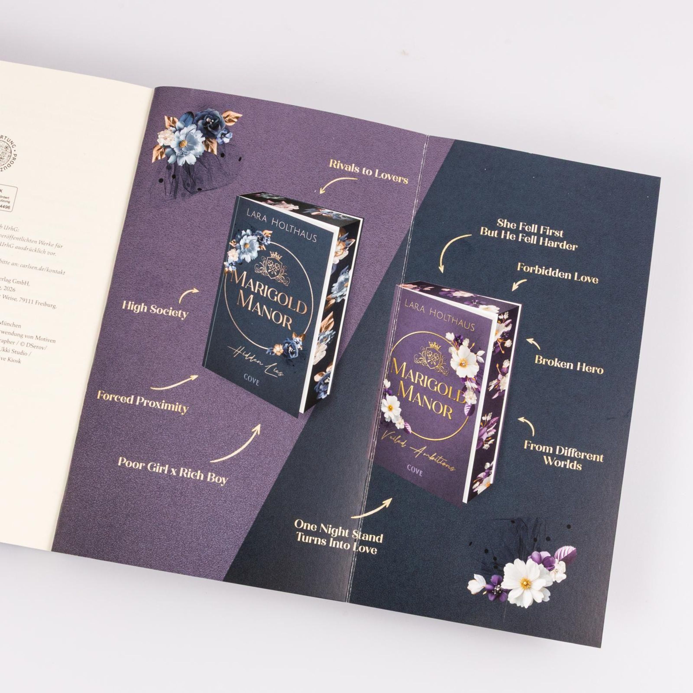 Die High Society Romance mit Suspense Vibes erscheint als hochwertig veredelte Klappenbroschur und erhält einen dreiseitigen Motiv-Farbschnitt sowie einen ablösbaren Duftsticker auf dem Cover in der ersten Auflage, nur solange der Vorrat reicht.