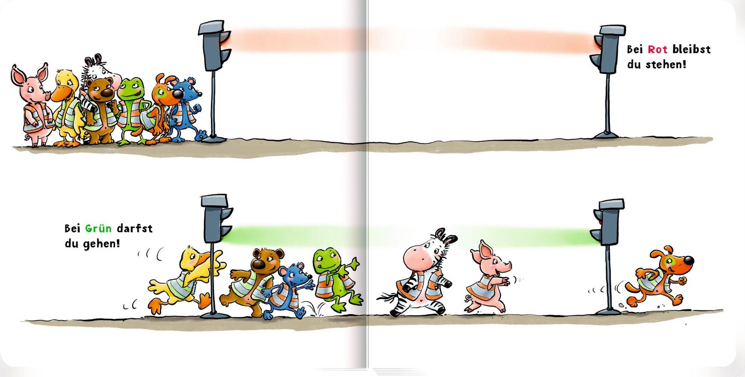 Stehen bleiben - die Ampel ist rot! Huch, darauf hat Henri gar nicht geachtet. Dabei fährt er doch schon mit dem Roller zum Kindergarten. Da hilft nur eins: Verkehrserziehung! Die Lieben Sieben zeigen wie es geht, damit jeder den Weg zum Kindergarten sicher meistert.
