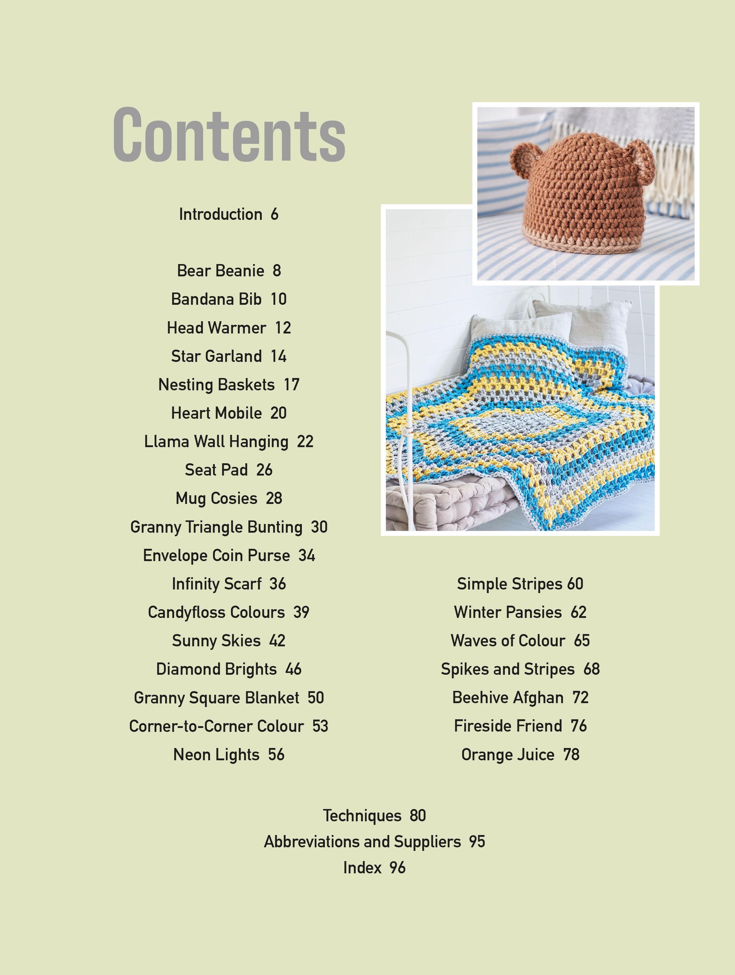 Designed especially for beginners, there are 25 easy patterns from expert crocheter Laura Strutt to get you started, all designed in a fresh palette of brights, neutrals and variegated yarns.
