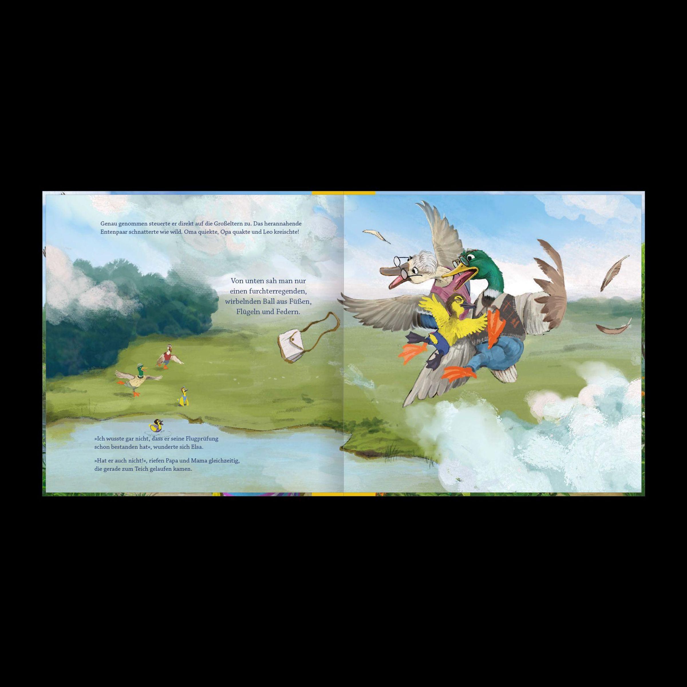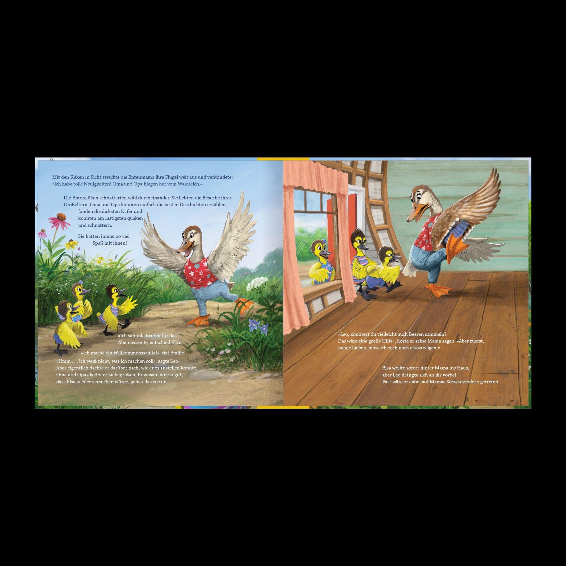 In diesem spannend erzählten und detailreich illustrierten Kinderbuch lernen die Enten-Geschwister, was es bedeutet, den anderen höher zu achten als sich selbst, einander zu unterstützen und um Vergebung zu bitten.